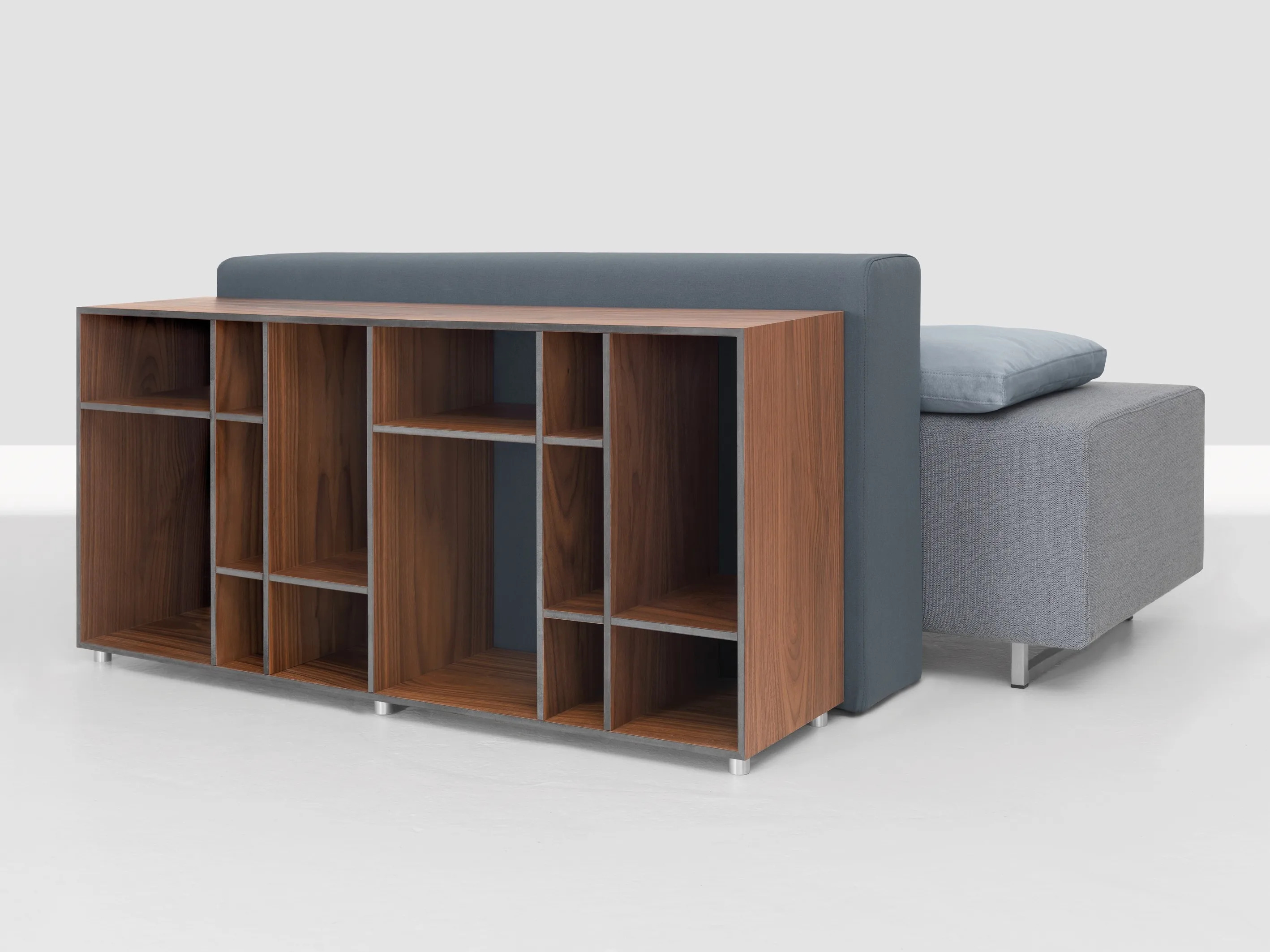 CODE 4 offers a sophisticated blend of modern architectural design and practical functionality, making it a versatile choice for various environments such as offices, boutique shops, hotels, libraries, and coworking spaces. Its minimalist storage units feature a sleek exterior that contrasts with a thoughtfully designed interior, providing four distinct compartment sizes to efficiently organize items like files, box-files, paperbacks, DVDs, and CDs. Crafted from anthracite MDF with open edges and available in finishes such as oak, graphite grey, cold grey, American walnut, and HPL white laminated, this modular storage furniture is both durable and stylish. The adjustable aluminum feet, with a height of 2.5 cm, enhance stability. CODE 4 seamlessly integrates into any setting, offering space-saving storage systems and retail shelving solutions without compromising on aesthetic appeal.
