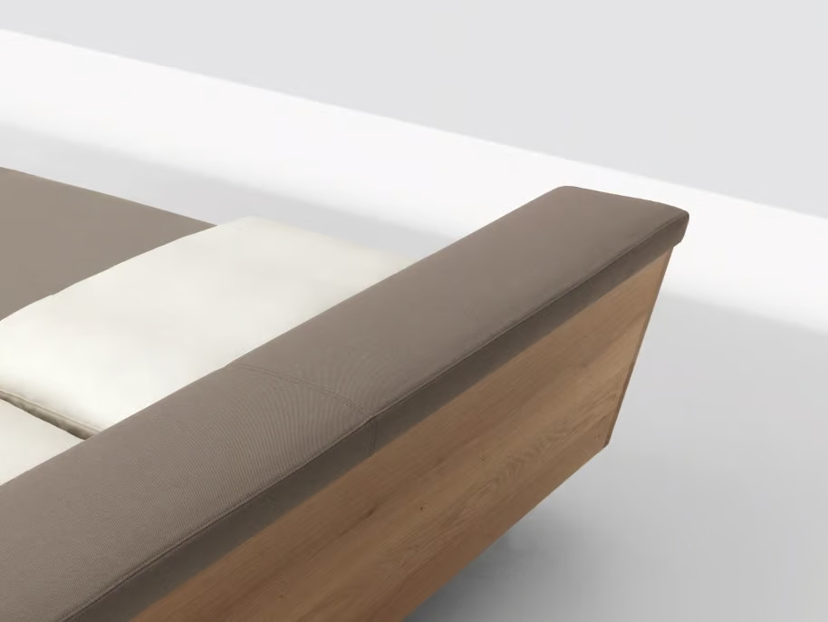 The FUSION double bed offers a modern and versatile solution for hotels, boutique inns, and family-friendly accommodations. Its sleek design, featuring a slanted headboard, creates a dynamic and airy appearance. The ergonomic, one-piece upholstered headboard provides comfort, while the solid wood rear adds a touch of sophistication, making it a standout piece in any space. Crafted from high-quality materials such as ash, oak, and walnut, the bed is available in various finishes, including white silk-matt lacquered MDF. The FUSION bed supports multiple mattress sizes, ensuring compatibility with comfortable mattresses. Its design accommodates space-saving bedroom furniture needs, making it ideal for children's room furniture and multifunctional bedroom sets. The bed's construction includes adjustable support profiles for slatted base systems, enhancing its functionality in modern bed frames and nightstands.