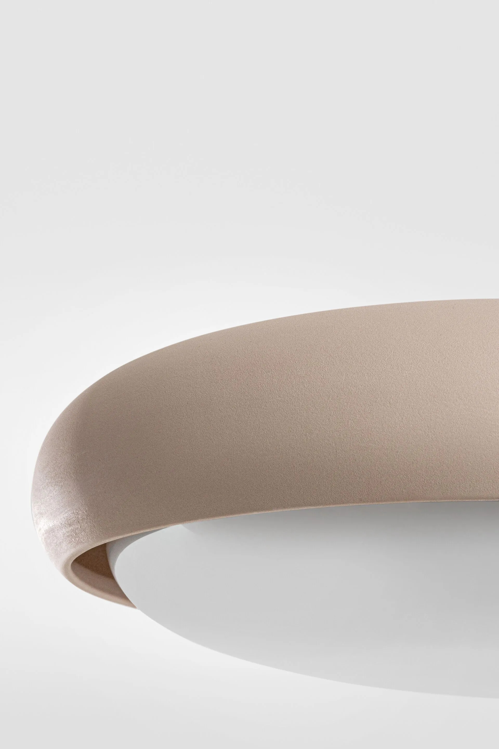 GEMA L showcases the natural allure of clay, crafted by hand in Portugal. This modern chandelier design features a distinctive lampshade made from Engobe ceramic, available in earth-inspired tones of pale rose, sand, and coal, and offered in three different sizes. The surface, reminiscent of sand, is achieved through a unique Engobe ceramic coloring technique that refines the clay and seals its open pores with a thin layer of liquid clay mineral mass. The ceramic shade encases an opaque, mouth-blown glass body, providing ambient lighting that softly illuminates any space. The design is completed with a reinforced light grey textile cable and strain relief. GEMA L is an ideal choice for those seeking energy-efficient lighting solutions in hotels, offices, retail spaces, restaurants, and residential interiors.