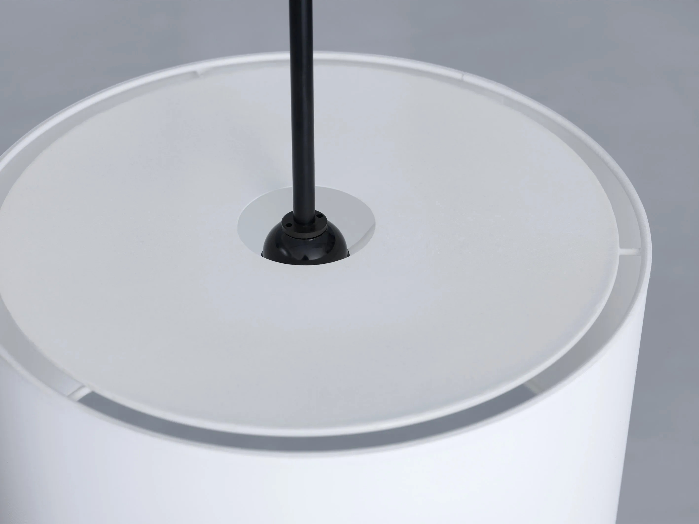 NOON 1 SMALL offers a sophisticated touch to any space, resembling a small moon with its subtle glow. Ideal for placement above a small table or beside a bed, this modern chandelier design features a textile lampshade available in white, light grey, warm grey, and black. The accompanying textile cable and canopy come in either white or black, complementing the overall aesthetic. Constructed with a sturdy iron frame, the lamp provides soft ambient lighting, enhanced by a diffuser to prevent glare. Designed for ceiling heights of 240 to 270 cm, it is height adjustable and earthed to minimize electromagnetic pollution. Recommended for use with an LED Parathom Classic P 40 DIM 4.5 W, E 27 bulb, this energy-efficient lighting solution is perfect for hotels, offices, retail spaces, restaurants, and residential interiors seeking modern LED interior lighting.