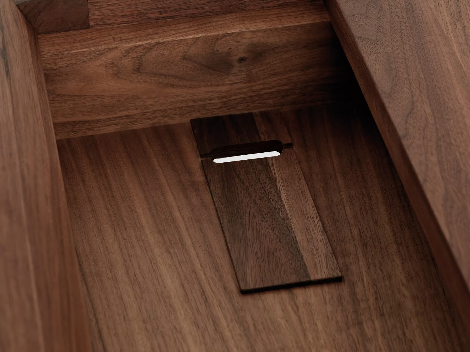 SECRET offers a modern take on the classic school desk, blending elegance with functionality. Its sleek design features finely measured cross sections and elongated legs for stability, making it ideal for restaurants, conference rooms, coworking spaces, cafés, event venues, and educational institutions. The desk includes two foldable compartment covers that discreetly hide storage space for writing tools, a small laptop or tablet, and power cords. Crafted from solid wood options like oak, knotty oak, and American walnut, the surface is treated with natural oils and waxes for durability. Available in various widths, this piece also includes a stationery tray and cable outlet, making it a versatile choice for dining tables, café chairs, and conference room furniture.