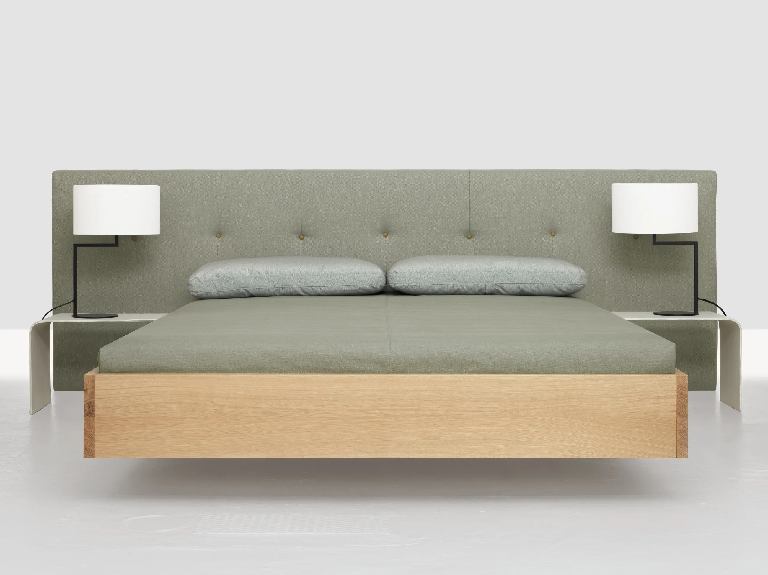 The SIMPLE BUTTON bed offers a versatile solution for hotel beds and children's room furniture, combining style and functionality. Its standout feature is the buttoned upholstered headboard, available in fabric or leather, which can be added to the SIMPLE bed for a cohesive look. Choose from a range of widths to seamlessly integrate with modern bed frames and nightstands, or opt for an over-width design to unify bed and side furnishings. Crafted from solid wood options like ash, oak, and walnut, or MDF with a white silk-matt lacquer, this bed is impregnated with natural oils and waxes for durability. Available in various sizes, it includes a comfort height option and supports slatted base systems with adjustable profiles, making it ideal for space-saving bedroom design and multifunctional bedroom sets.