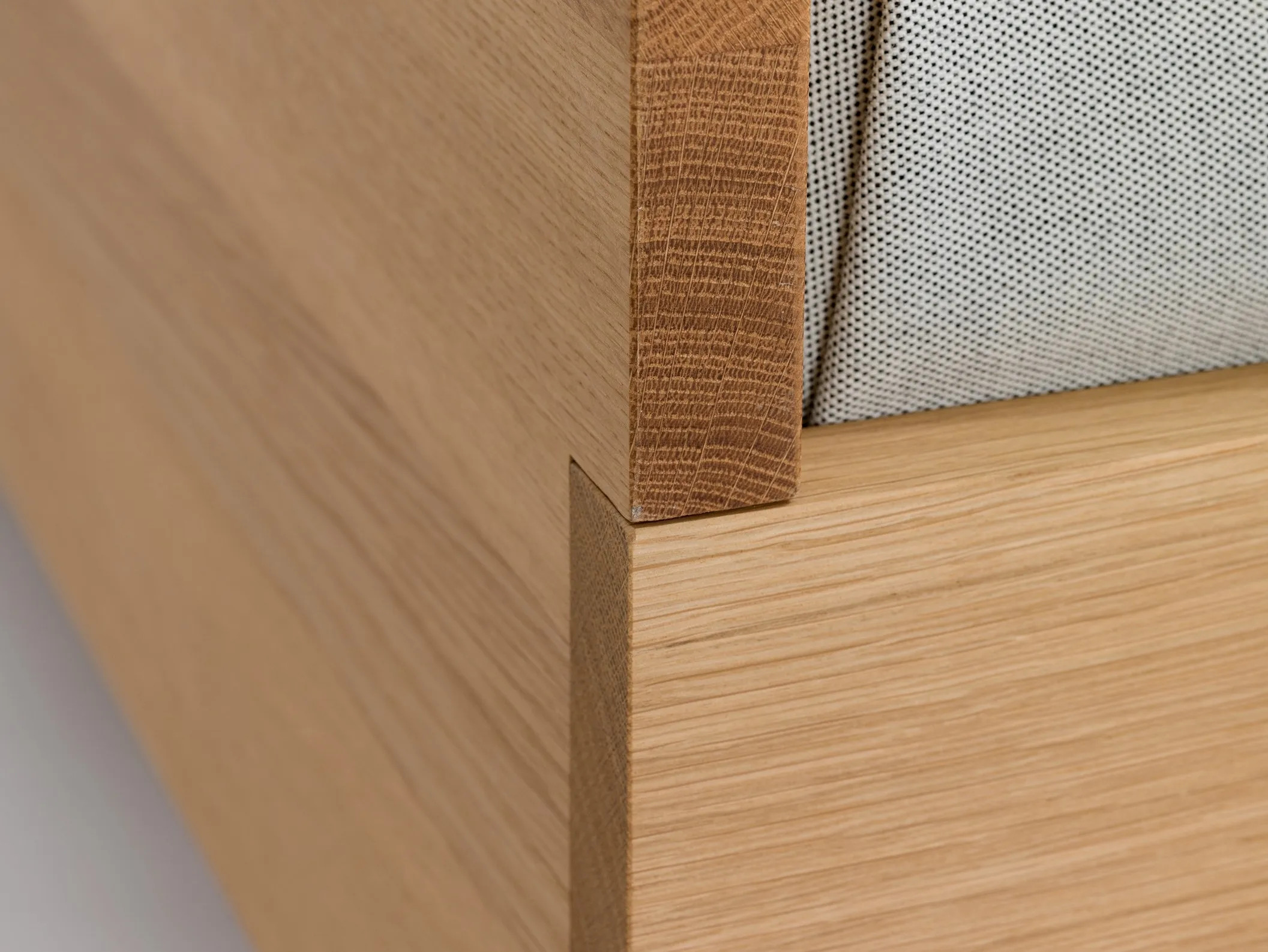 The SIMPLE HI bed offers a versatile solution for hotels, boutique inns, family-friendly resorts, and residential designers seeking modern bed frames and nightstands. Available with headboards in two heights, 67 cm and 79 cm, this bed features a minimalist design that highlights the natural beauty of solid wood. The floating frame enhances its lightweight appearance, making it an ideal choice for space-saving bedroom design. Crafted from materials such as ash, oak, and walnut, the bed is finished with natural oils and waxes for durability. The SIMPLE HI accommodates various room sizes and includes a comfort height option, with bedside and feet elevated by 4 cm. It supports slatted base systems with adjustable profiles, ensuring compatibility with comfortable mattresses. This multifunctional bedroom set is perfect for children's room furniture, offering creative bedroom storage solutions and space-saving bedroom furniture options.