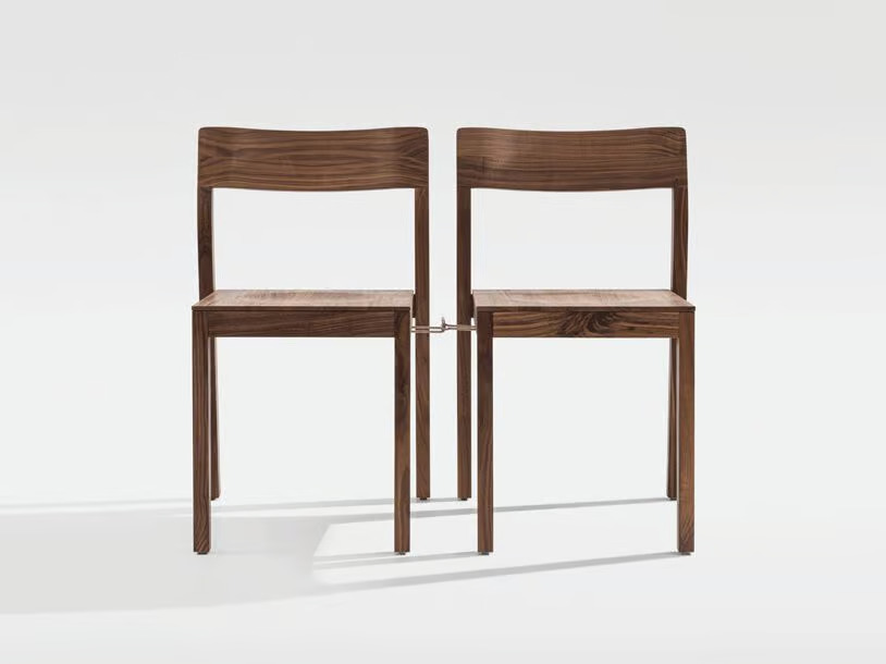 The SIT chair offers a versatile seating solution, ideal for restaurants, conference rooms, coworking spaces, cafés, event venues, and educational institutions. Its simple yet confident design complements both modern and classical architecture. Crafted from solid wood options such as oak, American cherry, and American walnut, the chair is finished with natural oils and waxes or a matt lacquered oak stain. Available with a wooden seat or close upholstery, SIT is stackable up to five chairs, making it a practical choice for spaces requiring flexible seating arrangements. Equipped with plastic glides, it can be customized with additional furniture glides for various flooring types. The chair meets CATAS Test EN 1728:2012 Level 2 standards for durability. Optional features include a foldable wire bow hanger in brass.