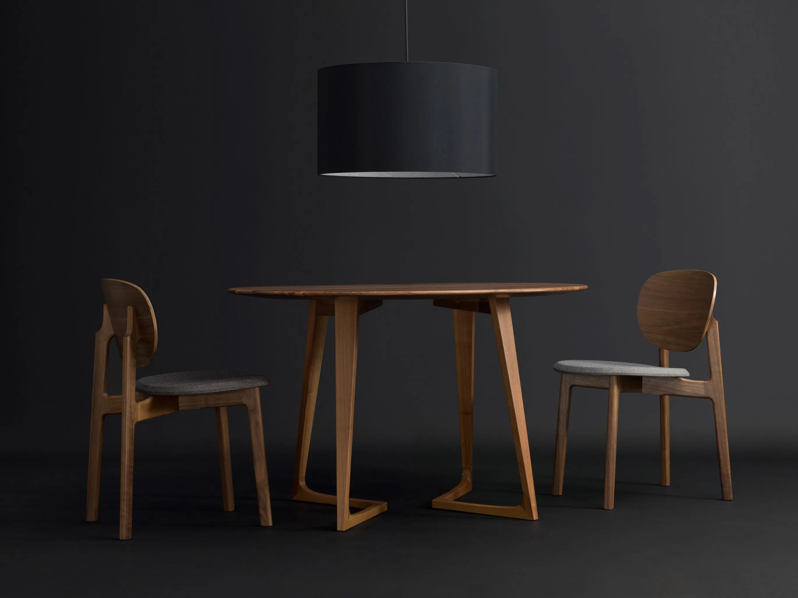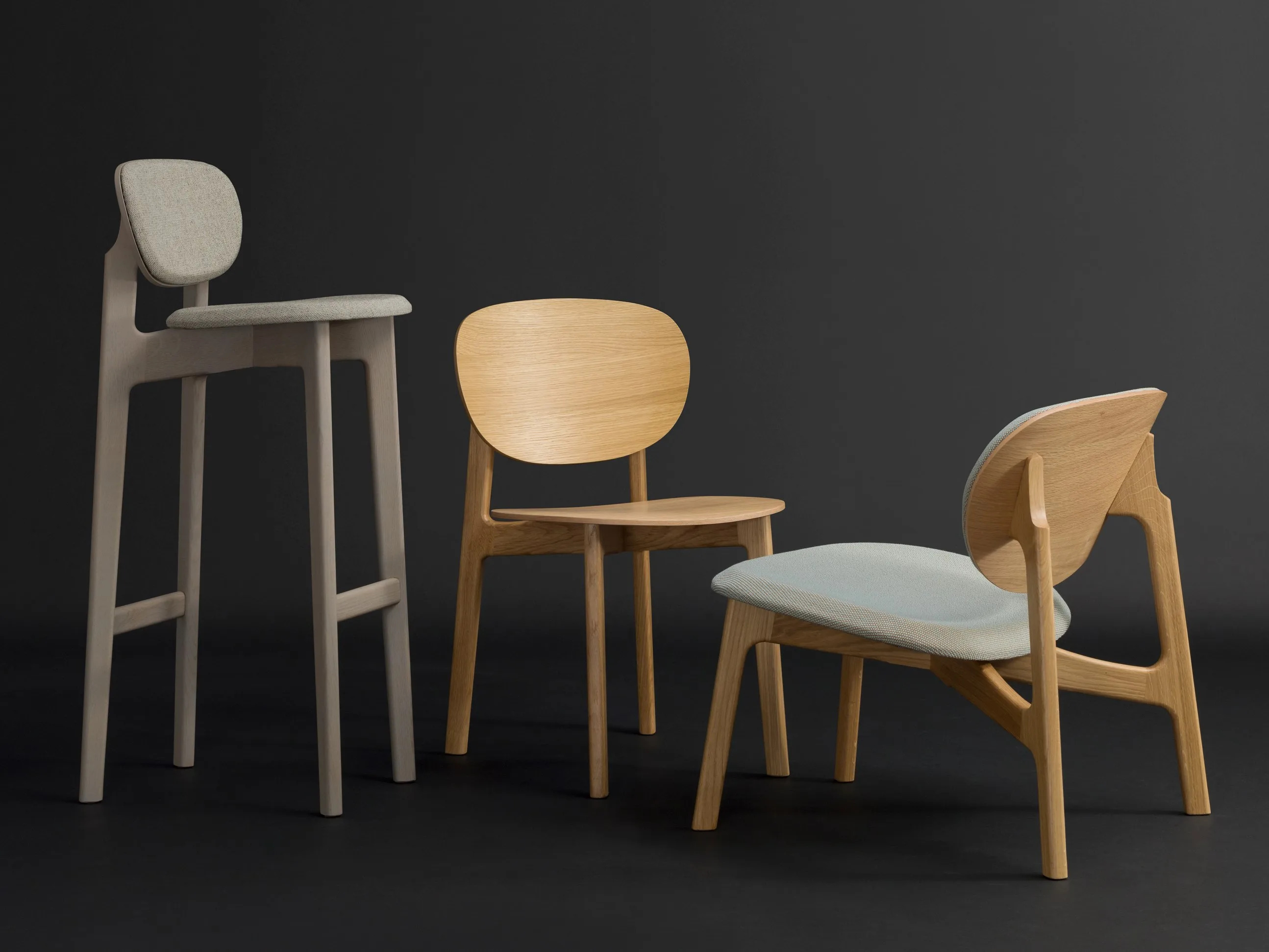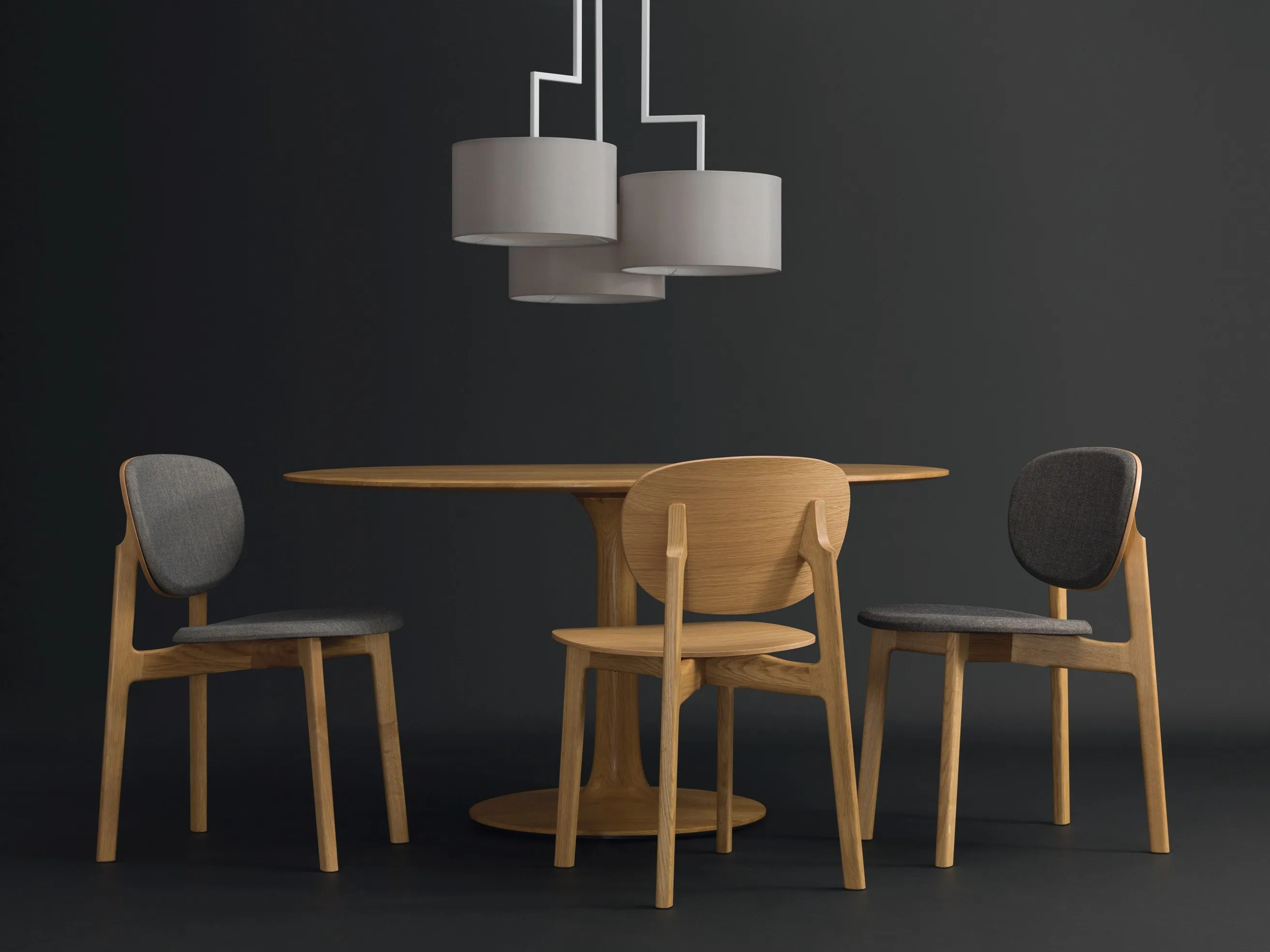 The ZENSO Chair, crafted by the designer duo Formstelle, offers a sculptural and modern design ideal for dining tables, conference rooms, and café settings. Inspired by the Enso symbol in Japanese calligraphy, the chair embodies elegance and simplicity. Its expressive wooden frame features two floating circles, forming the seat and back, made from solid wood and veneered plywood. Available in oak, oak color stain, or American walnut, the chair's surface is finished with a matte lacquer. Options include a wooden seat and back, a fully upholstered seat with a wooden back, or both seat and back upholstered in fabric or leather. Designed for durability, these ergonomic and stackable chairs come with plastic glides, with additional options for various flooring types available.