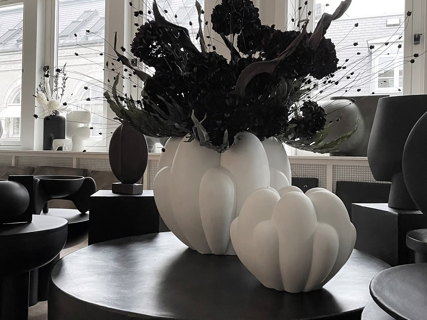 A BLOOM BIG váza a virágformák ihlette, lágy és organikus alakzatokat ötvöző kerámia kollekció része. Minden darab elegánsan formált, ahol a virágszirmok egymásba olvadnak, visszaidézve a virág különböző állapotait a bimbótól a teljes nyílásig. A 70-es évek virágos dizájnjának modern értelmezése, amely nyers és letisztult megjelenést kapott. A finoman ívelt felületet erős geometria ellenpontozza, és a mélységek körüli árnyékjáték gazdagítja. A BLOOM vázák kifejező formatervezése miatt a fény és árnyék változásával a nap folyamán különbözőképpen mutatkozik meg. Kerámiából és szálbetonból készül, kézzel mázolt felülete egyedi textúrát biztosít. A színek enyhén eltérhetnek, mivel kézzel készült termékről van szó. Nem teljesen vízálló, ezért friss virágokhoz zacskó tartozik.