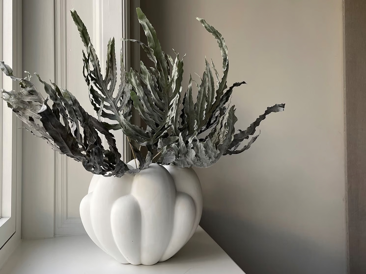 A BLOOM MINI váza a virágformák ihlette lágy és organikus vonalakat ötvözi szoborszerű kerámia alkotásokban. Minden darab elegánsan formált, ahol a virágszirmok finoman egymásba olvadnak, visszaidézve a virág különböző nyílási fázisait. A 70-es évek virágos dizájnjának modern értelmezése, amely nyers és letisztult megjelenést kapott. A sima, ívelt felületet erős geometria és a fény-árnyék játék gazdagítja, amely a nap folyamán változó élményt nyújt. A BLOOM kerámiából és szálbetonból készül, kézzel mázolt felülete egyedi textúrát biztosít. A színek enyhén eltérhetnek a kézi készítés miatt. A váza nem teljesen vízálló, ezért friss virágokhoz zacskó is tartozik.