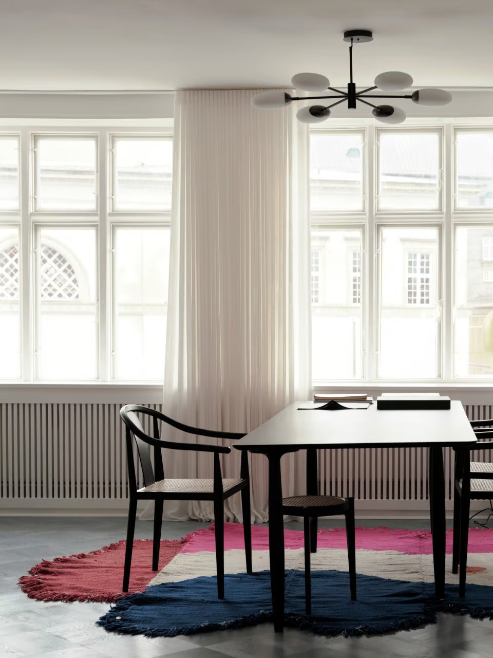 A SALON CHANDELIER OPAQUE az Art Deco stílus ihlette, minimalista megközelítése a klasszikus 20. századi csillároknak. Hat lámpabúrája elegánsan helyezkedik el egy könnyű fémvázon, amely hatszög alakot formál. A karok egy finoman csillogó középrészhez csatlakoznak, diszkrét részletet adva a lámpának. A lámpabúrák kézzel fújt opálüvegből készülnek, matt fehér felülettel, amely meleg fényt biztosít bármely helyiségben. A lapos, ovális formájú búrák lehetővé teszik, hogy a lámpa közel helyezkedjen el a mennyezethez anélkül, hogy érintené azt. A karcsú búrák szögből nézve változnak, szoborszerű és játékos részletet adva a csillárnak. Két méretben, Medio és Grande, kapható, vasból készült bronz bevonattal és fehér opálüveg búrákkal. Ideális választás irodák, éttermek, szállodák és középületek számára, ahol a modern és hangulatos világítás fontos szempont.