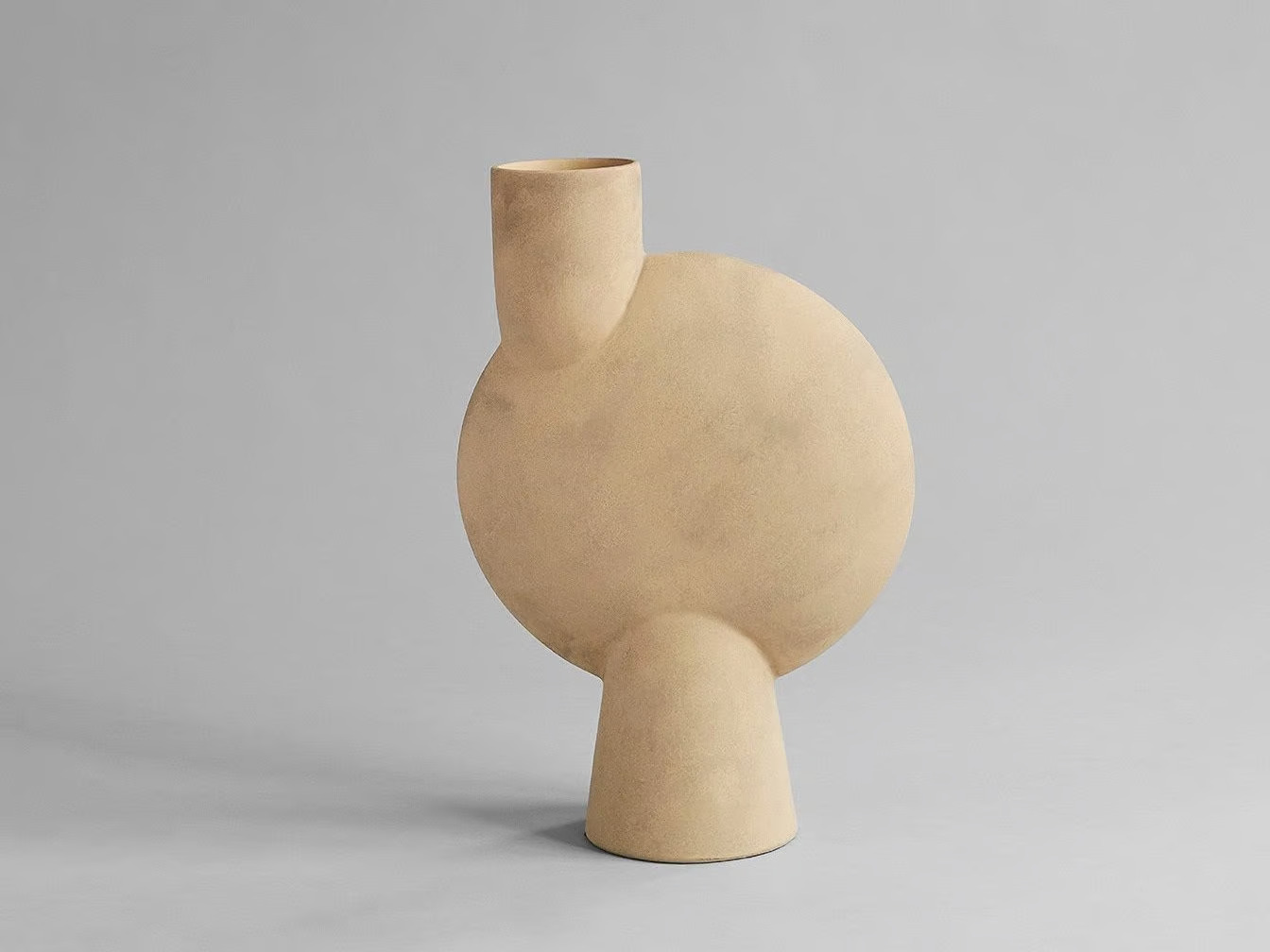 A SPHERE kollekció a 101 Copenhagen vizuális nyelvének és jellegzetes sorozatának szimbólumává vált. A sorozat egyedi sziluettek és textúrák családja, amelyek dekoratív és szobrászati módon egyesülnek. Minden váza elegánsan formált, részletes díszítéssel ellátott. Az ősi kínai vázák ihlette kollekcióra a fakó földszínek jellemzőek, amelyeket tapasztalt keramikusokkal szoros együttműködésben fejlesztettek ki, biztosítva a sima formák és éles élek közötti pontos kontrasztot. Mivel kézzel mázolt természetes termék, a színek enyhén eltérhetnek, és bár nem teljesen vízálló, friss virágokhoz egy tasakot is tartalmaz. Ideális választás irodák, szállodák, panziók, vendéglátóhelyek, középületek és üzletek számára, mint lakásdekoráció és lakberendezési kiegészítő.