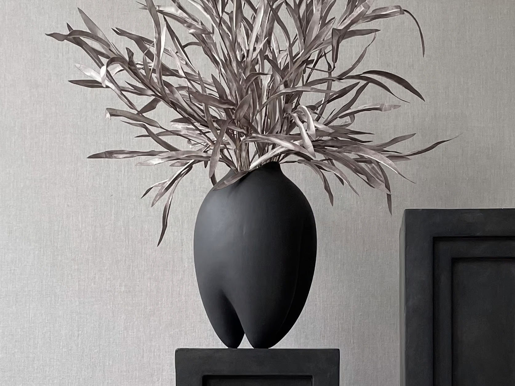 A SUMO SLIM váza a japán szumó sport ihlette formavilágával tiszteleg az emberi test előtt. A vázák impozáns méretükkel és formájukkal tűnnek ki, keskeny, hegyes lábakon nyugszanak. A kollekció darabjai különböző nyílásokkal rendelkeznek, a hagyományos keskeny nyílásoktól a dupla és mélyen faragott nyílásokig. A SUMO kollekció a megszokott vázaformák és az absztrakt, művészi részletek kontrasztját vizsgálja, megkérdőjelezve a váza alakjáról alkotott egyéni elképzeléseinket. Ezek az alkotások önálló művészeti tárgyként is megállják a helyüket, de együtt egy egységes családot alkotnak. Mivel kézzel mázolt, természetes termék, a színek enyhén eltérhetnek, és mivel nem teljesen vízálló, friss virágokhoz zacskó is tartozik hozzá.