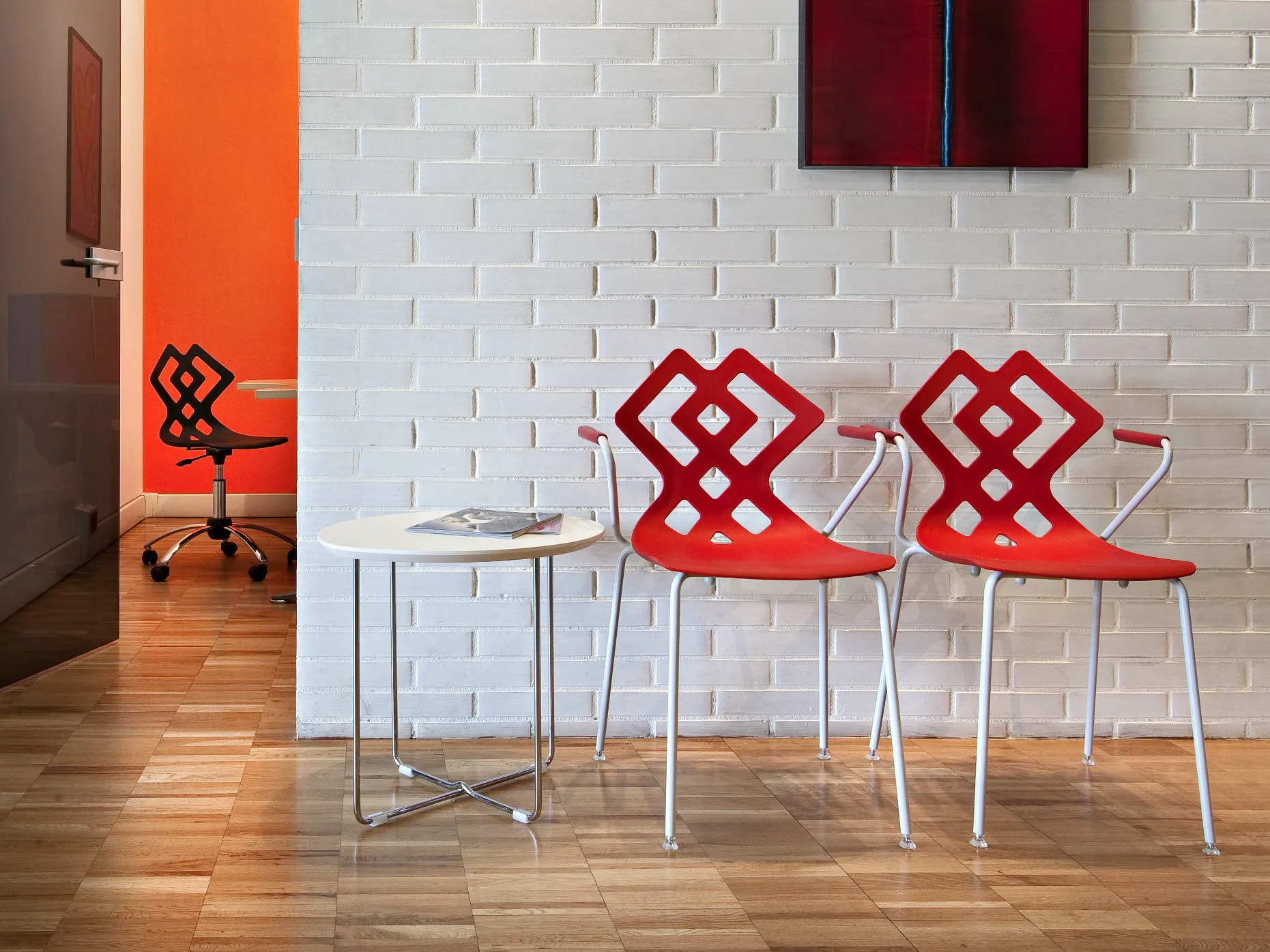 Az AMARCORD kerek dohányzóasztal ideális választás irodák, éttermek, kávézók, oktatási intézmények, konferenciatermek és középületek számára. A 490 mm magas asztal 585×485 mm-es asztallappal rendelkezik, amely krómozott acélból vagy festett kivitelben érhető el. A lakkozott MDF asztallap modern megjelenést kölcsönöz, amely harmonikusan illeszkedik design székekhez és modern asztalokhoz. Az AMARCORD tökéletesen alkalmazkodik különböző környezetekhez, legyen szó irodai asztalról vagy étkezőasztalról, és kiválóan kiegészíti a kávézó székek stílusát.
