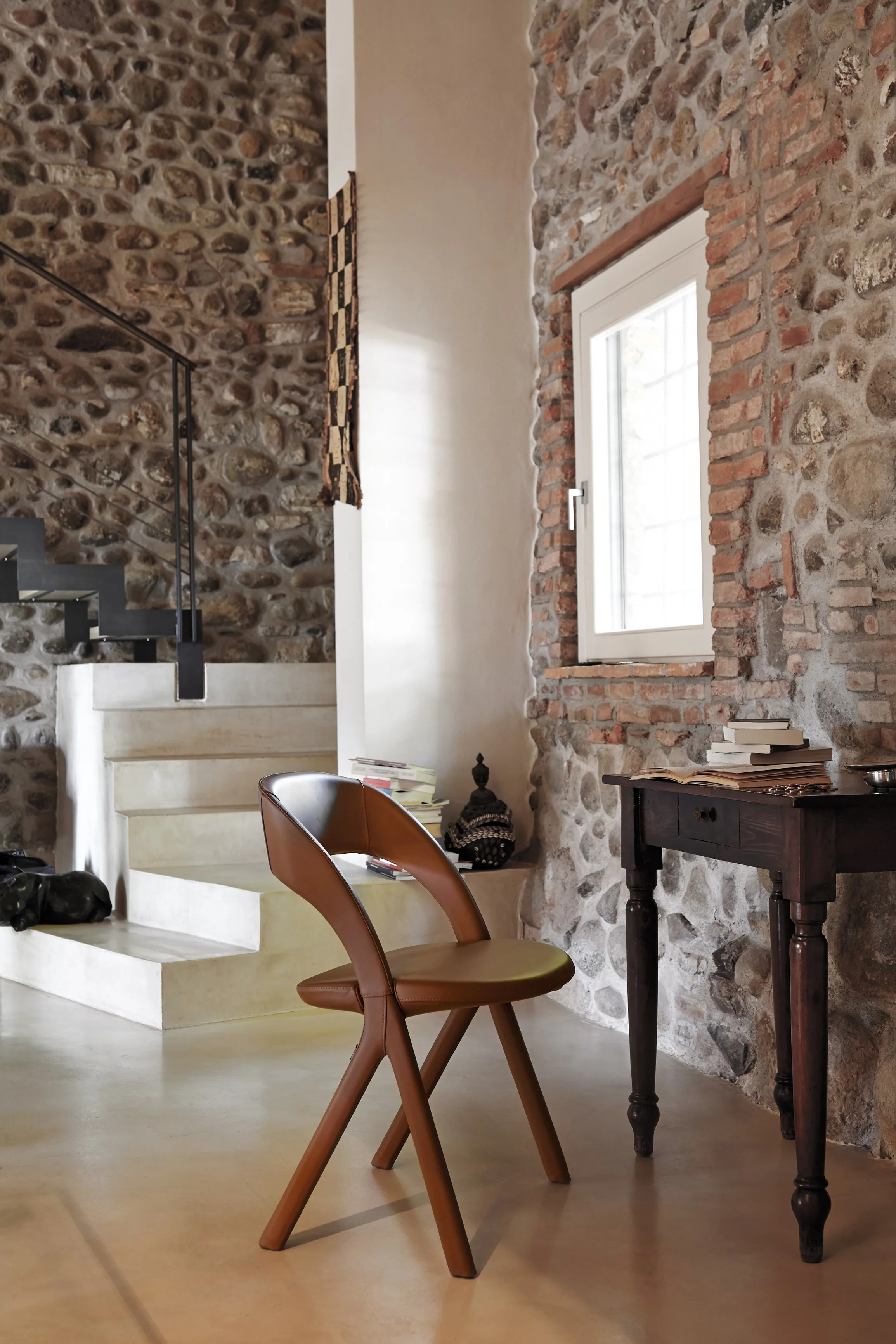 A GESTO bőrszék elegáns, ívelt vonalai a görög 'lambda' betűt idézik. Az ölelő háttámla finoman ereszkedik le, és négy karcsú lábra oszlik. Formája egy állat sziluettjére emlékeztet, hidegen formázott poliuretán habból készült. Belső szerkezete acélból áll. A GESTO különböző változatokban elérhető: bőr, eco bőr vagy számos más szövet borítással, amelyek a mintakönyvből választhatók. Ideális választás étkezőasztalokhoz, modern asztalokhoz, irodai asztalokhoz és kávézó székekhez, tökéletesen illeszkedve irodák, éttermek, kávézók, oktatási intézmények és konferenciatermek környezetébe.