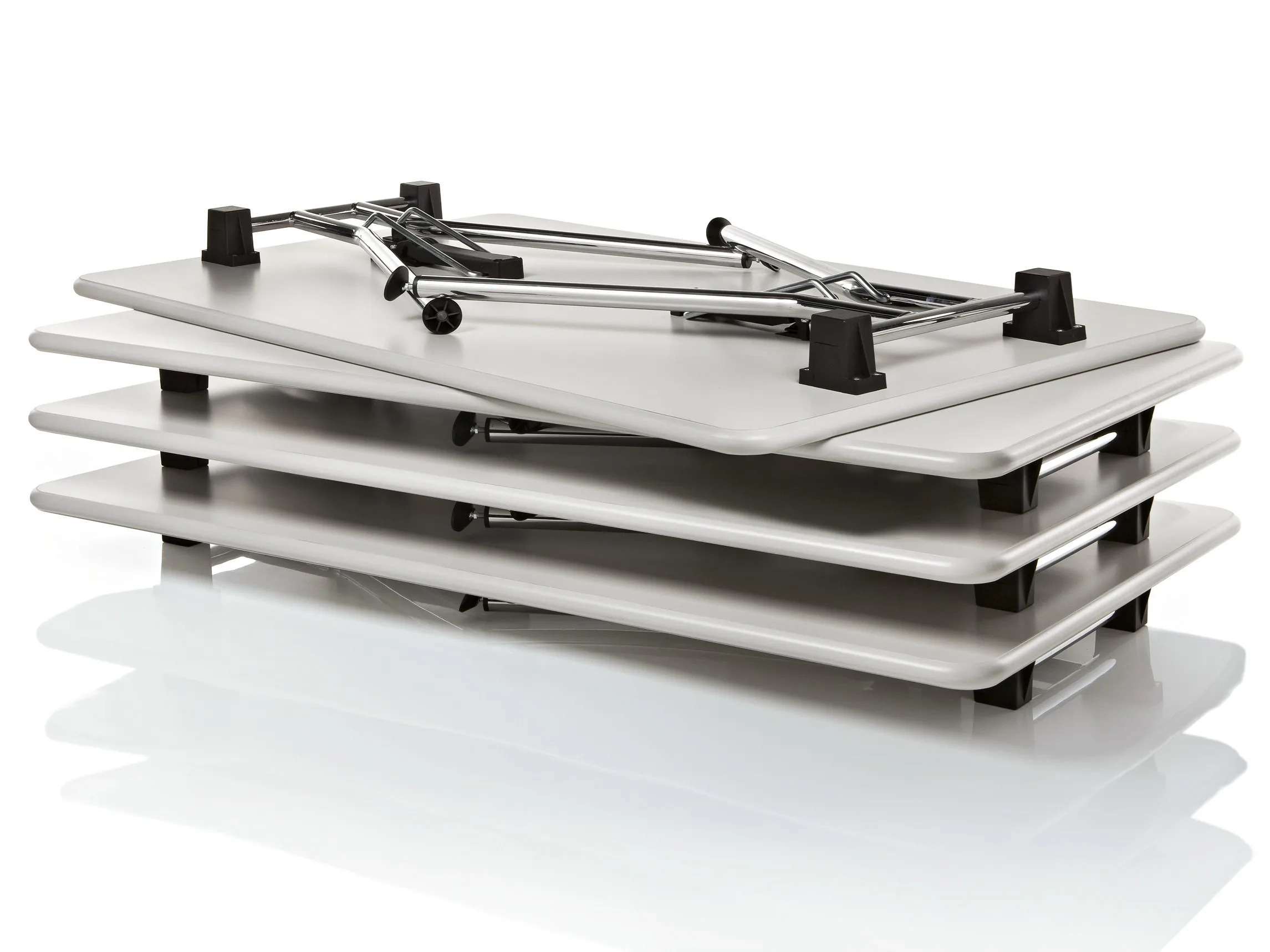 Az INKA asztal praktikus megoldást kínál irodák, éttermek, kávézók és oktatási intézmények számára. Összecsukható lábai révén könnyen mozgatható és helytakarékosan tárolható. Az asztal állítható lábakkal rendelkezik, és választható epoxi porfestett vagy krómozott felülettel. A 27 mm vastag asztallap ütésálló PVC szegéllyel van ellátva. A nylon eszköz segítségével az asztalok sorba rendezhetők és összekapcsolhatók. A modern asztalok különböző méretekben érhetők el, 620 mm szélességtől 1600 mm hosszúságig. Az alumínium festett váz és a laminált melamin asztallapok különböző színekben választhatók. Ideális választás étkezőasztalnak, irodai asztalnak vagy kávézó székek mellé.
