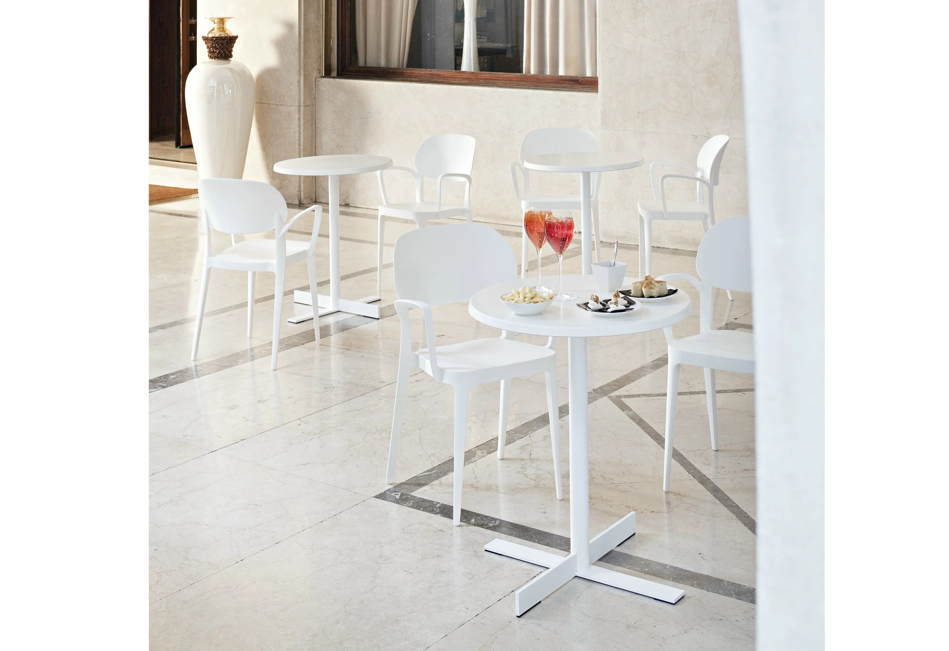 A People kerek asztal festett fém négyágú talppal rendelkezik, és három különböző magasságban elérhető. Ideális választás irodák, éttermek, kávézók, oktatási intézmények, konferenciatermek és középületek számára. Az asztal klasszikus és letisztult formatervezésű lapjai különböző méretekben és anyagokban kaphatók, így könnyen illeszkedik bármilyen környezetbe, legyen az beltéri vagy kültéri. Igény esetén összecsukható asztallappal is rendelhető. Tökéletesen kombinálható design székekkel, modern asztalokkal, és kávézó székekkel, így sokoldalú megoldást kínál étkezőasztalként vagy irodai asztalként is.