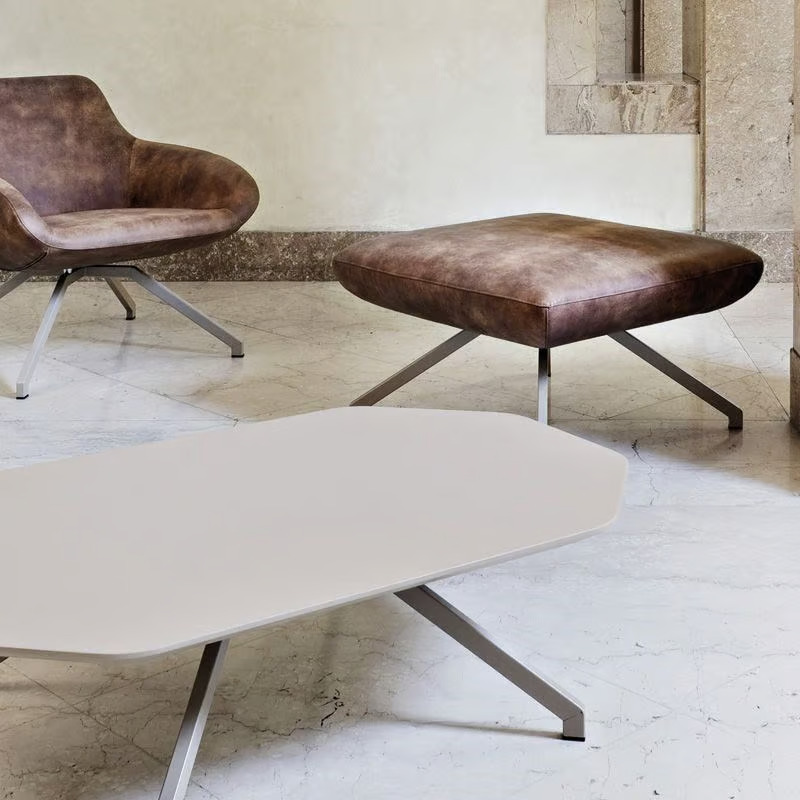 Az X Pouf egy bőr puff, amely acél fix vázzal rendelkezik. Az anyagok festett acélból készülnek, a szövetek és bőrök a mintakönyvből választhatók. Az X-Pouf különlegessége, hogy a kollekció többi darabjától eltérően, azonos anyagokból készül, mint a hozzá tartozó fotelek, és az 'X' lábelrendezés jellemzi. Az X-Big és X-Pouf ideális választás olyan terek berendezésére, ahol a kényelem és elegancia fontos, mint például irodák, szállodák vagy konferenciatermek. Ezek a nappali bútorok és designer kanapék kényelmes kanapék és szállodai bútorok kiegészítői lehetnek, amelyek barátságos és otthonos légkört teremtenek.