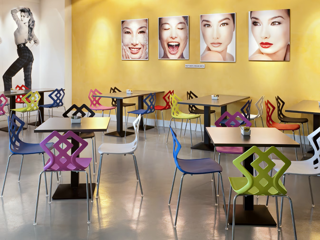 A ZAHIRA szék ideális választás irodák, éttermek, kávézók, oktatási intézmények és konferenciatermek számára. A székek különböző változatokban érhetők el: négy lábú keret karokkal vagy anélkül, sorba rendezést segítő összekapcsoló rendszerrel. Az anyagok és színek széles választéka áll rendelkezésre, beleértve a krómozott acélt, festett alumíniumot, valamint fekete, fehér, kék, piros, fukszia és savzöld polipropilént. A modern asztalokhoz és étkezőasztalokhoz is illeszkedő design székek UV-álló technopolimerből készülnek, amely a második generációs légformázásnak köszönhetően rendkívül ellenálló és karcsú megjelenésű. A székek kültéri használatra is alkalmasak, krómozott vagy epoxi festett acélvázzal. A kollekció tartalmaz forgó és magasságállítható, ötcsillagos talpú változatokat is, valamint tárolókocsit a székek egyszerű tárolásához.