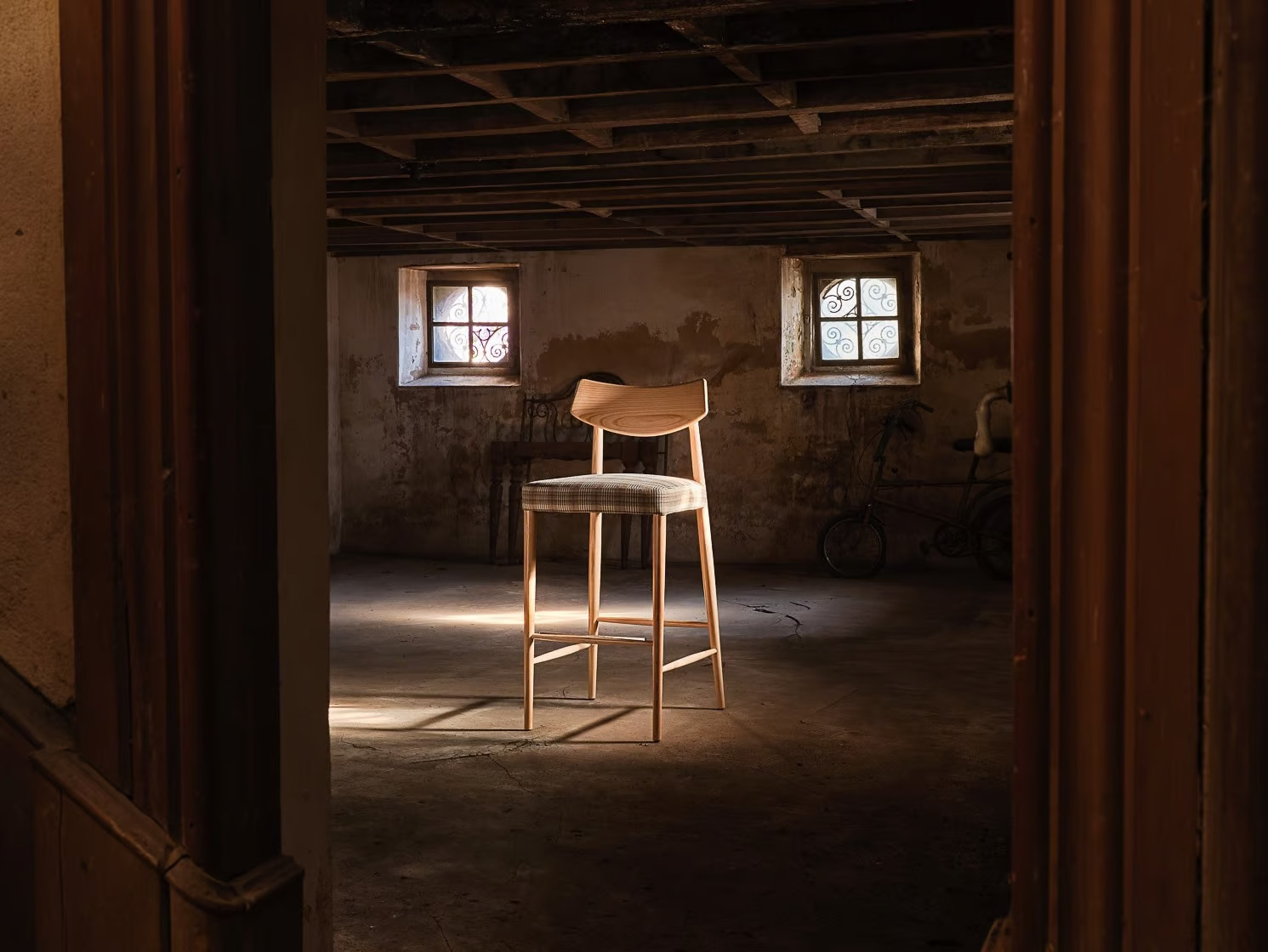 Upholstered wooden barstool