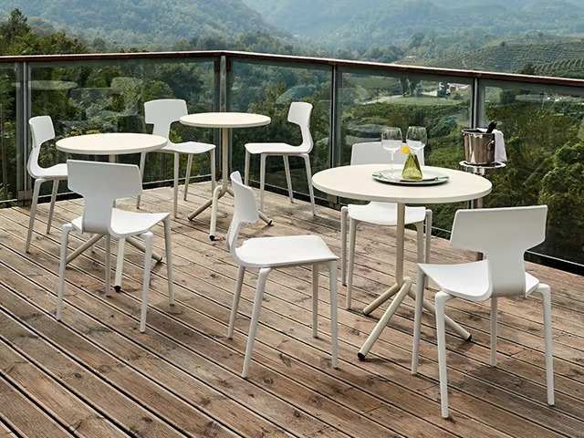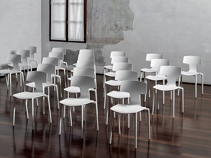 A SPLIT szék két részből áll, amelyeket hasonló, de eltérő összetételű szintetikus anyagok alkotnak. A héj puhább és rugalmasabb, míg a lábak merevebbek, így a szék kényelmes ott, ahol szükséges, és erős, ahol elvárt. Az anyaghasználat szándékosan minimalizált, hogy a szék könnyed megjelenést kapjon, amit dinamikus vonalai is kiemelnek. A SPLIT különféle színkombinációk révén testreszabható, így ideális választás étkezőasztalokhoz, irodai asztalokhoz, modern asztalokhoz, valamint kávézó székekhez. A szék kiegészíthető egy kis panellel, amely szövettel vagy ökobőrrel borított, így még több variációs lehetőséget kínál.
