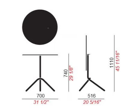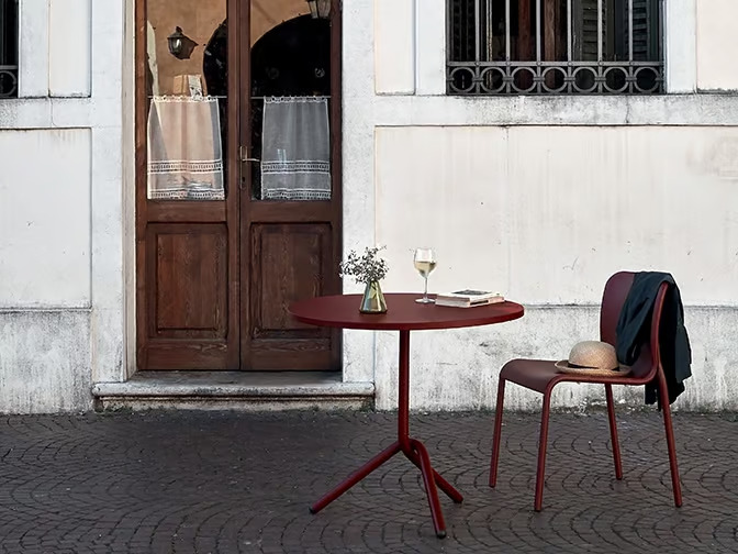 A TA 1-700 asztalokat egyedi formájú, csőacél szerkezet támasztja alá, amely lehetővé teszi a vízszintes egymásra helyezést a felhajtható asztallapnak köszönhetően. Az asztallapok acéllemezből készülnek, két különböző magasságban és átmérőben elérhetők, így ideálisak étkezőasztalként, irodai asztalként vagy modern asztalokként. A kollekció sokoldalú megoldásokat kínál belső és külső, nyilvános és magánterek számára. A design székek és kávézó székek tökéletesen kiegészítik ezt a bútordarabot, amely fémlemez vagy HPL asztallappal is rendelhető.