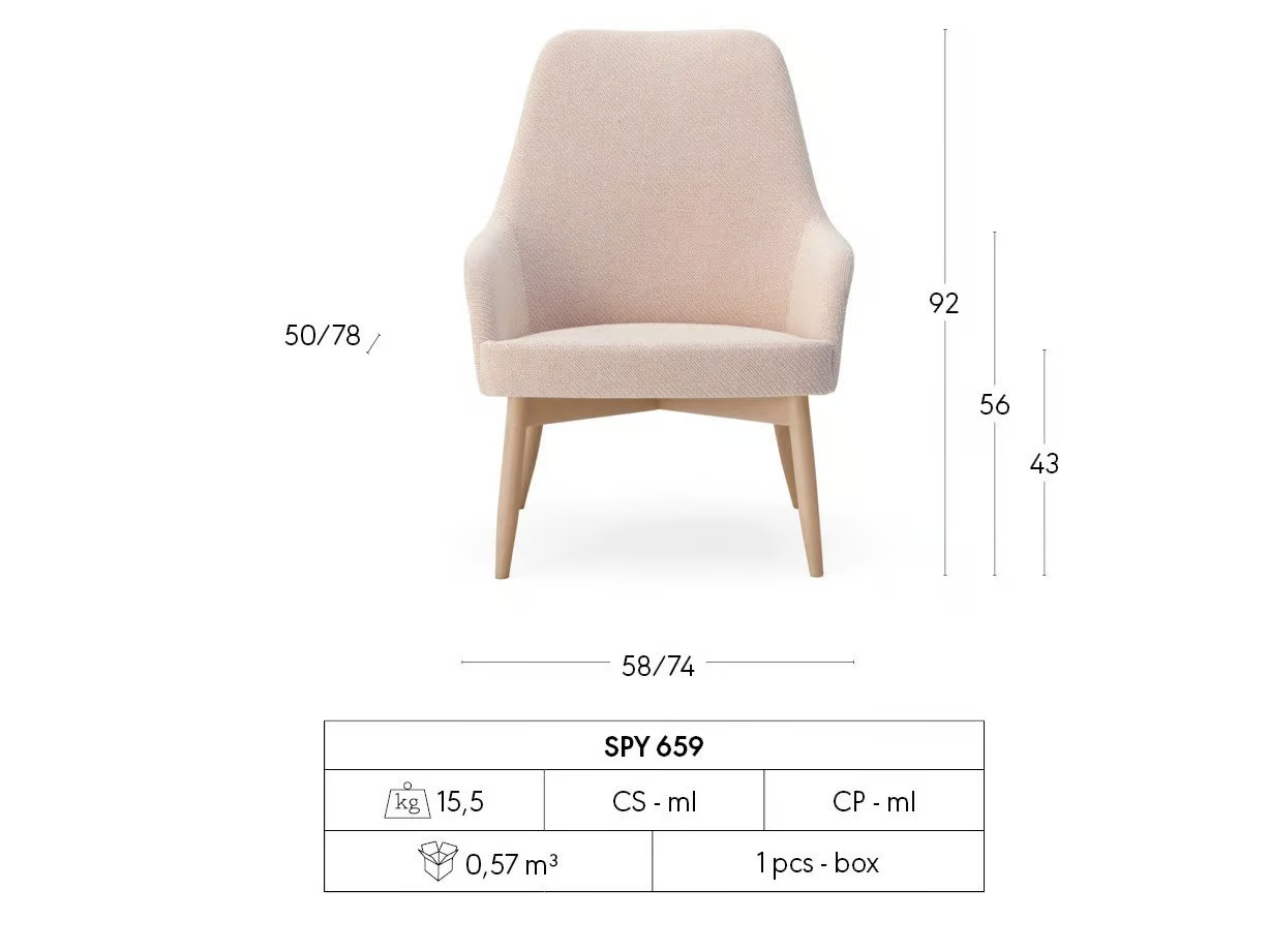 A SPY 659 egy elegáns, magas háttámlájú ülőalkalmatosság, amely tökéletes választás irodák, szállodák és vendéglátóhelyek számára. A bútor anyaga pácolt vagy lakkozott bükkfa, kárpitozása pedig szövet, műbőr vagy valódi bőr lehet. A SPY kollekció széles választékot kínál, beleértve a különböző ülőalkalmatosságokat, asztalokat és dohányzóasztalokat. A kollekció jellegzetessége a lábak kialakítása, amelyek finoman elkeskenyednek és enyhén kifelé dőlnek. A test formatervezése is figyelemre méltó, a lekerekített vállak hátrahajlanak, hogy befogadják a hátsó lábakat. Ideális választás kényelmes kanapék és nappali bútorok között, valamint irodai és szállodai környezetben is.