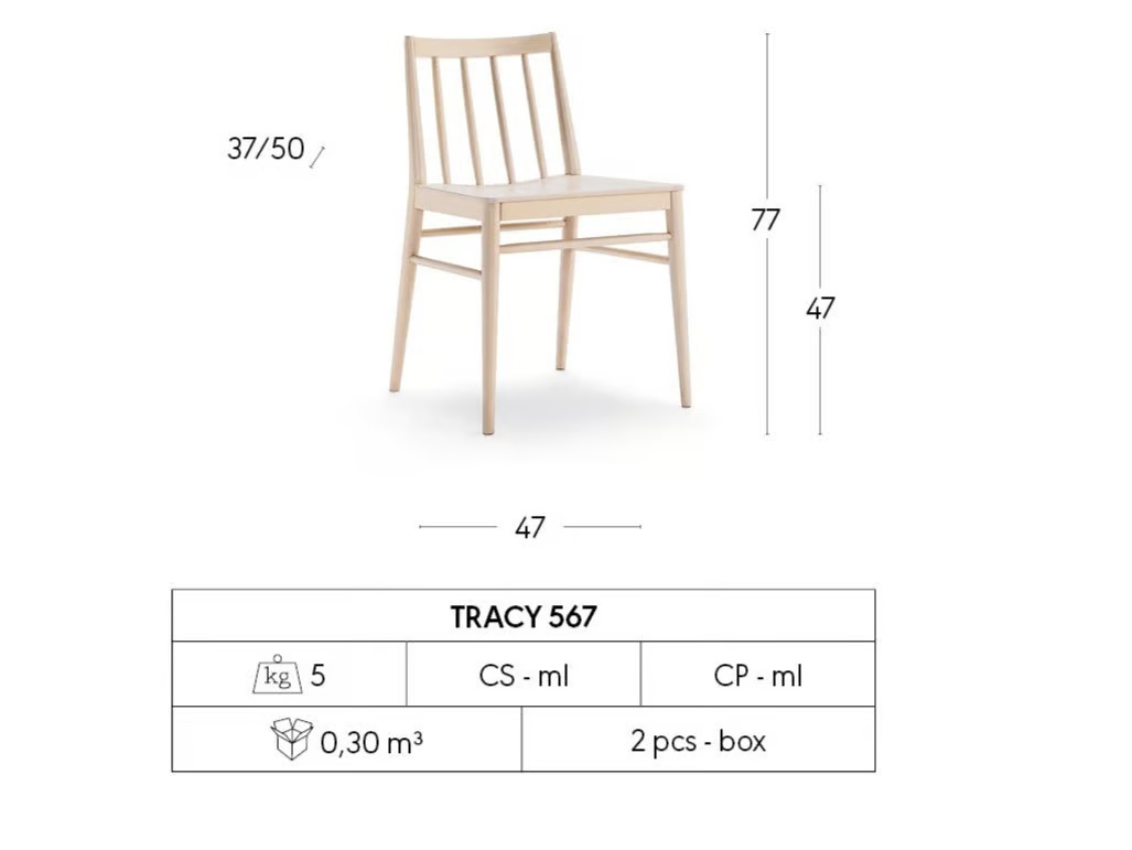 A TRACY 567 egy elegáns szék, amely tökéletes választás irodák, éttermek, kávézók, oktatási intézmények és konferenciatermek számára. A szék anyaga pácolt vagy lakkozott bükkfa, amely tartósságot és esztétikus megjelenést biztosít. A háttámla karcsú, tömör rudakból készült, ami modern és letisztult dizájnt kölcsönöz. Ideális étkezőasztalok mellé, valamint irodai asztalok kiegészítőjeként. A TRACY 567 harmonikusan illeszkedik bármilyen enteriőrbe, legyen szó kávézókról vagy vendéglátóipari egységekről.