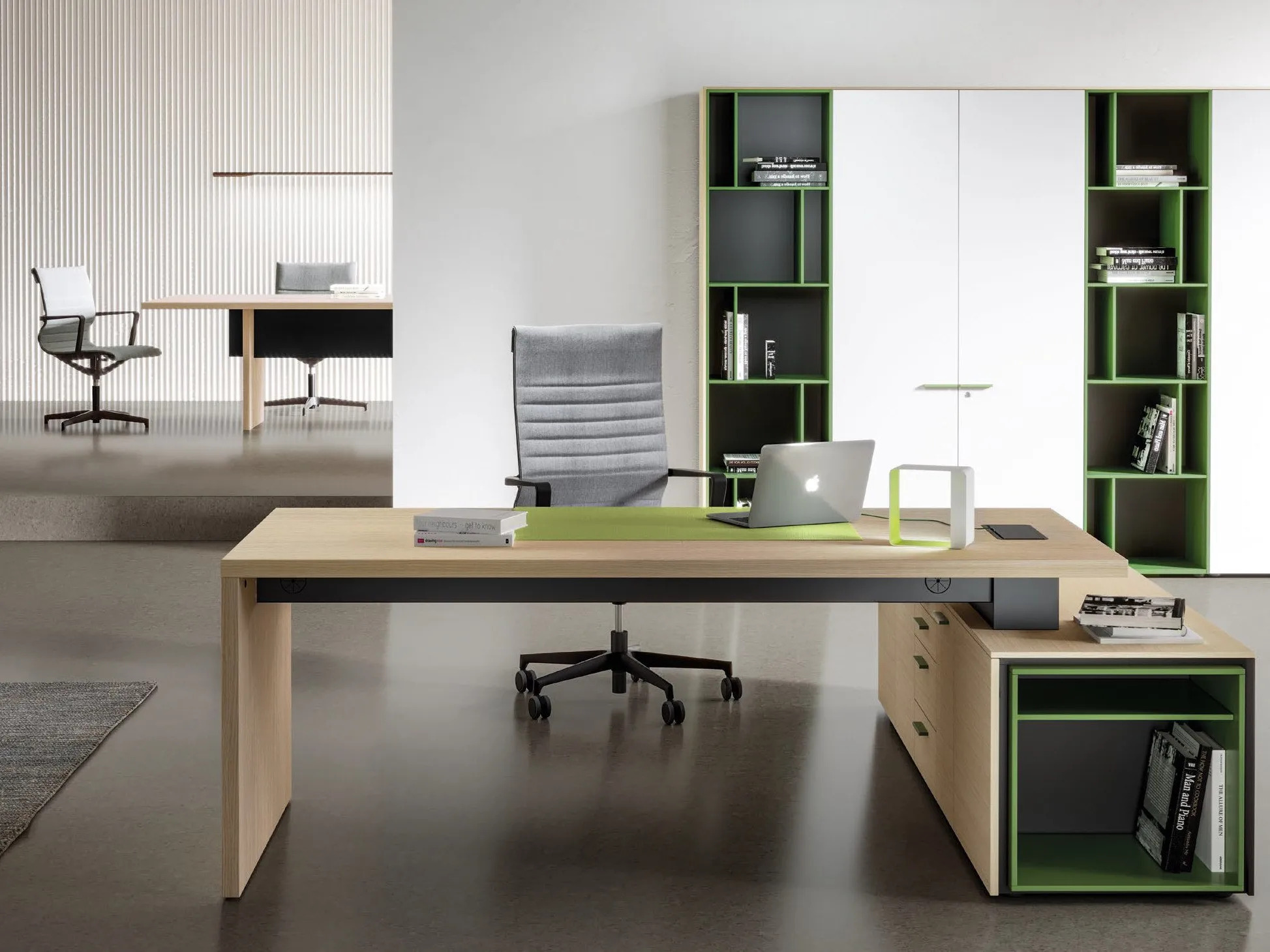 A SILE irodai asztal modern dizájnnal és eleganciával gazdagítja a vezetői tereket. A teherbíró szekrény elülső rekesze különböző, akár színes kivitelben is elérhető, ami könnyedséget és dinamizmust kölcsönöz a bútornak. Az oldalirányban elhelyezett, elektromosan állítható magasságú kiegészítő rész ergonomikus munkavégzést tesz lehetővé. Ideális választás cégek, irodák, közintézmények, vállalkozások, startupok, coworking terek számára, ahol az irodai székek és irodai tárolók mellett fontos a stílusos és funkcionális berendezés.