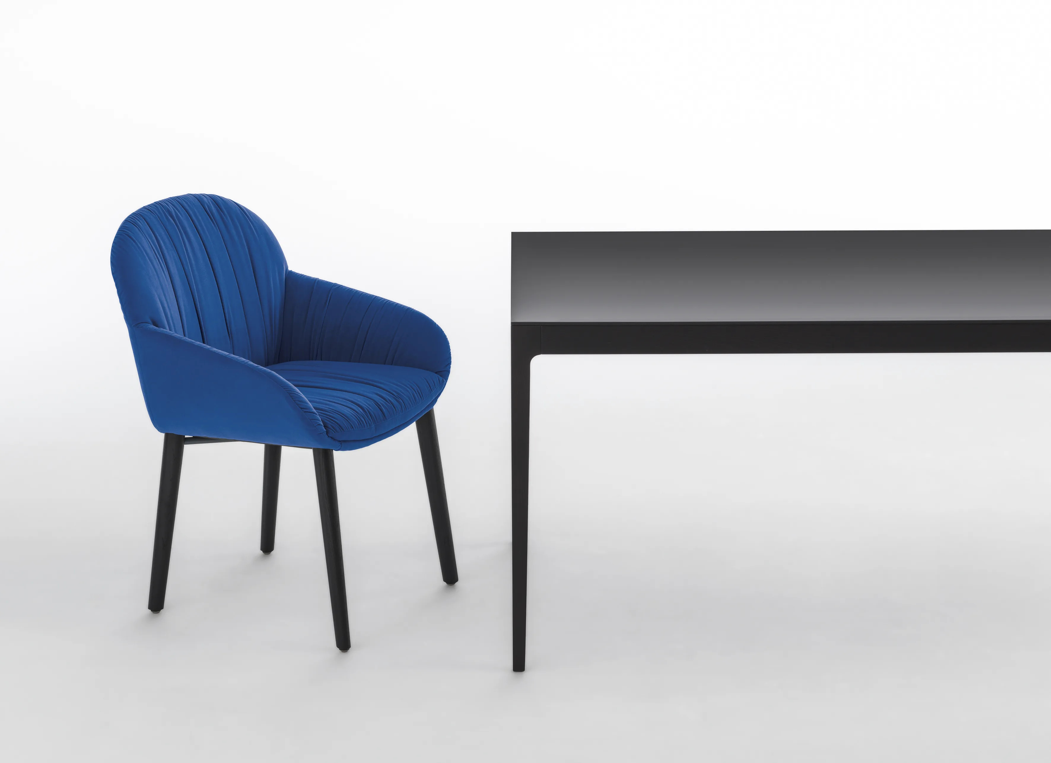 Az ELBA P 4W szék a Crassevig precíziós tervezésének és kivitelezésének eredménye, amelyet Daniel Debiasi és Federico Sandri álmodott meg. A szék ívelt rétegelt lemezből készült, amelyet különböző sűrűségű, lángálló habbal párnáztak, így kényelmes és puha ülőfelületet biztosít. A négy lábú alap tömör fából készült, amely stabilitást és eleganciát kölcsönöz. Az ELBA szék különböző lábvariációkkal érhető el, beleértve a fa- és fém lábakat, valamint az alumínium forgó- és görgős talpakat. Az ülőalkalmatosság különféle szövetekkel kárpitozható, így tökéletes választás étkezőasztalokhoz, modern asztalokhoz, irodai asztalokhoz, valamint kávézó székeként is megállja a helyét.