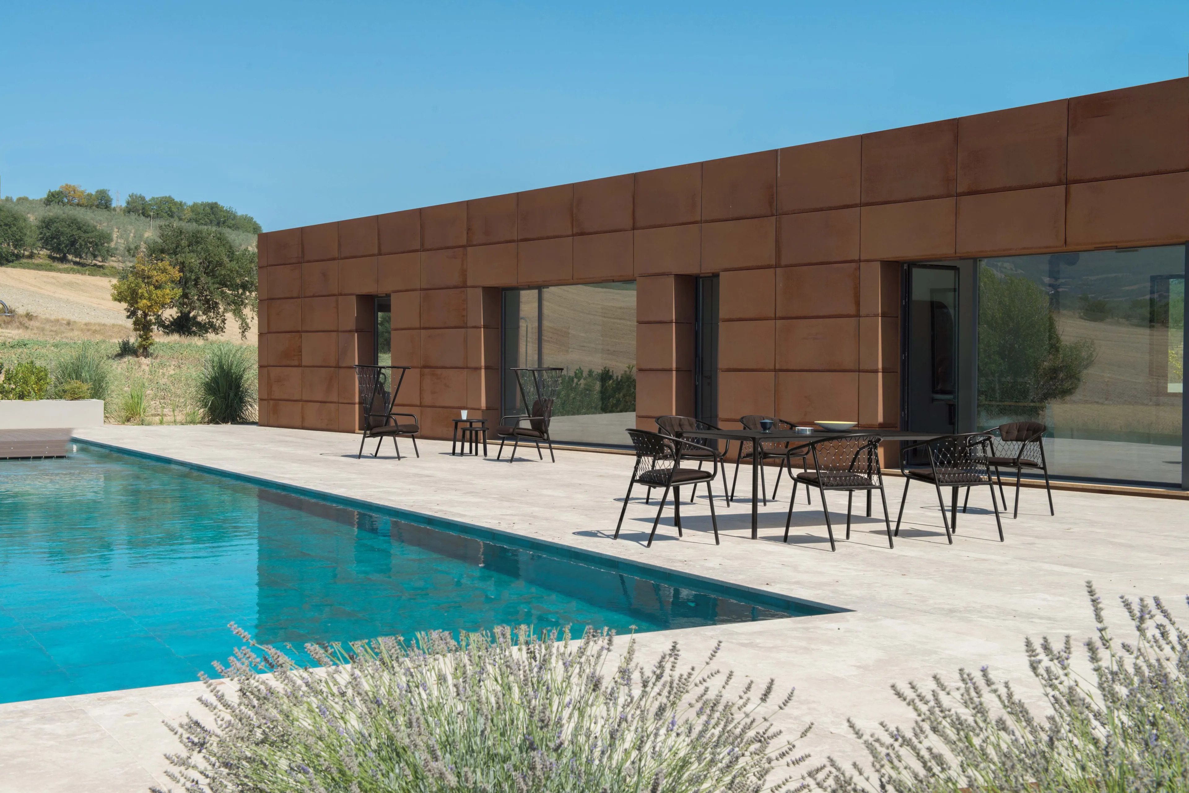 A NEF kollekciót Patrick Norguet tervezte az EMU számára, alumíniumból készült, és a szabadban való tartózkodás öröme ihlette. Az eklektikus stílus és a vizuális könnyedség ötvözete jellemzi. A csővázas szerkezet préselt lemezből készült ülőfelülettel párosul. A poliészter zsinórok, aisi316 rozsdamentes acél kapcsokkal rögzítve, természetes kényelmet és melegséget sugároznak. A szerkezet tágas méretei védelmet nyújtanak, miközben lehetővé teszik a környezet érzékelését. Az innovatív rögzítési rendszerrel ellátott rács különböző anyagok és székmodellek sokféleségét kínálja, beleértve az étkezőasztalokhoz és a lounge-hoz tervezett darabokat, különböző magasságú háttámlákkal. A kollekciót hamarosan párnák és alacsony asztalok egészítik ki. Színek és kombinációk: szürke/zöld váz - faszénszürke zsinór, fekete váz - fekete zsinór, fehér váz - szürke kötél.
