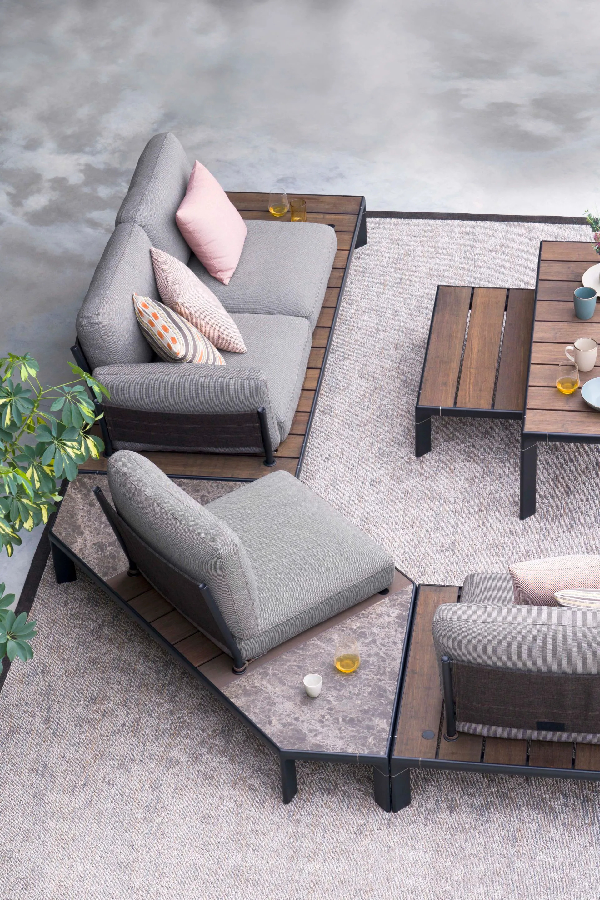 A TAMI kültéri ülőgarnitúra Patrick Norguet tervezése, amely két speciális 6060 alumíniumötvözet profilból és AISI316 rozsdamentes acél részletekből áll. Az egyedi profilok lehetővé teszik a tartófelület léceinek illesztését egy összekapcsoló rendszerrel. A lécek bambuszból vagy WPC-ből készülnek, amely újrahasznosított bambuszfa és rostok kompozitja, vízálló, időjárás- és baktériumálló, könnyen tisztítható és 100%-ban újrahasznosítható. A háttámlák és karfák összeszereléséhez speciális fröccsöntött nejlon alkatrészeket használnak, D28-as csőből és 30 x 8-as alumínium lemezekből. A karfák és háttámlák szövete 100% Polypropylene Outdoor Limonta, míg az ülőpárnák poliuretán habból készülnek, vízlepergető kezeléssel ellátott 100% pamut bélésűek. A kollekció részei: lounge szék váz, 2 és 3 személyes kanapé, sarokváz és alacsony asztal két változatban. Elérhető színek: Váz: Fehér, Fekete; Váz teteje: Basaltina; Sarokváz gres: statuario fehér; Lécszerkezet: WPC/Antracit és Bambusz; Párnák: Alap, Standard és Prémium szövetek.