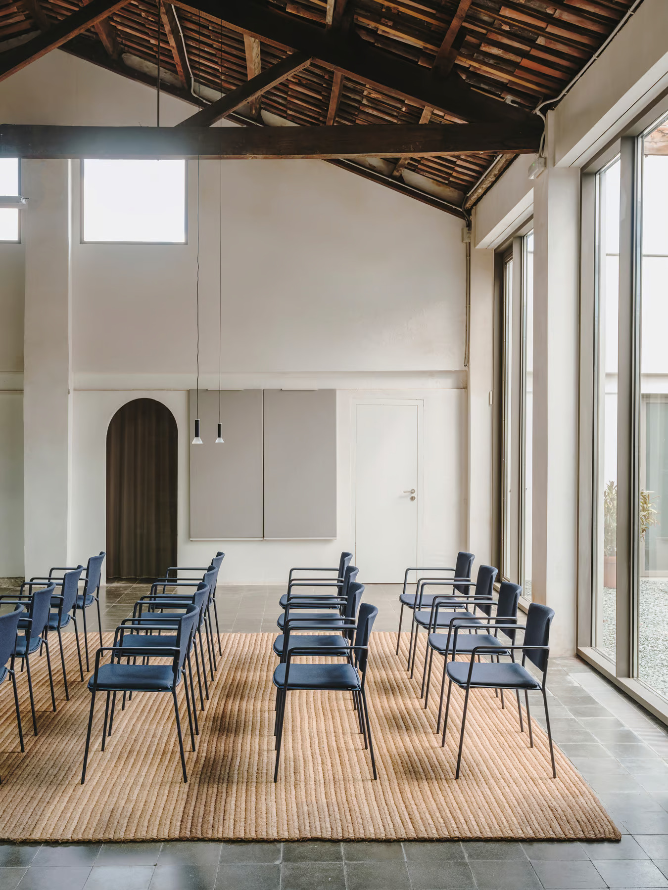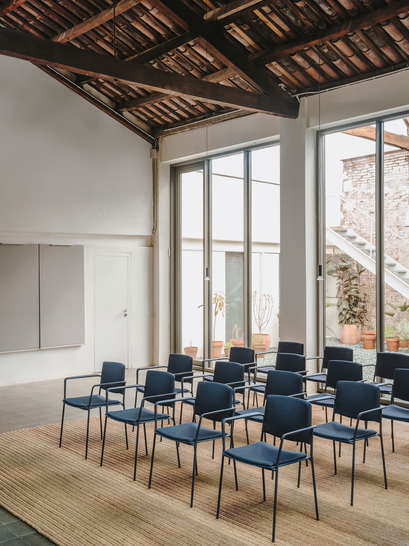 Az EMA 4L kárpitozott szék erős és könnyű, akár 30 darab is egymásra rakható, így ideális irodák, éttermek, kávézók, oktatási intézmények és konferenciatermek számára. A szék négy lábú acélszerkezete és alumínium karfái krómozott, polírozott vagy az Enea Design színeiben lakkozott kivitelben érhetők el. Az ülés és a háttámla polipropilénből vagy kárpitozott változatban is választható. Az ülőpárna kárpitozott változata különösen hasznos többfunkciós vagy zsúfolt terekben, mivel kevesebb súrlódást okoz, így a székek akár 20 darabig rakhatók egymásra kocsin, és 15 darabig a padlón. Az EMA kollekció sokoldalúsága és kiegészítői révén jól alkalmazkodik modern asztalok, étkezőasztalok és irodai asztalok környezetéhez.