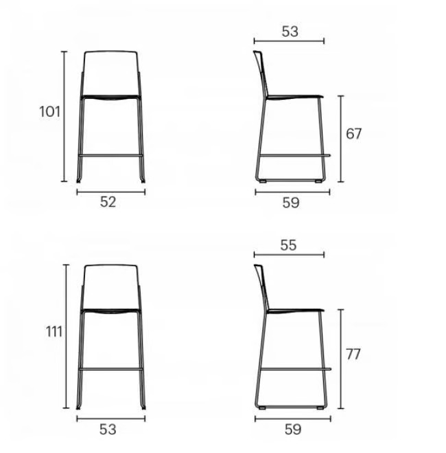 Az EMA magas szék zárt háttámlával rendelkezik, amely erős, könnyű és egymásra rakható, így ideális különféle terekbe. A szánkótalpas acélszerkezet krómozott vagy az Enea Design színeiben lakkozott kivitelben érhető el. Az ülés és a háttámla polipropilénből vagy kárpitozott változatban kapható. Az ülőpárna kárpitozott változata különösen hasznos többfunkciós vagy zsúfolt helyeken, mivel kevesebb súrlódást okoz, mint a teljesen kárpitozott verzió. Két magasságban elérhető: magas és közepes. Az EMA kollekció könnyedsége, szilárdsága és magas fokú egymásra rakhatósága, valamint a sokoldalú kiegészítők révén jól alkalmazkodik étkezőasztalok, irodai asztalok, modern asztalok és kávézó székek környezetéhez.