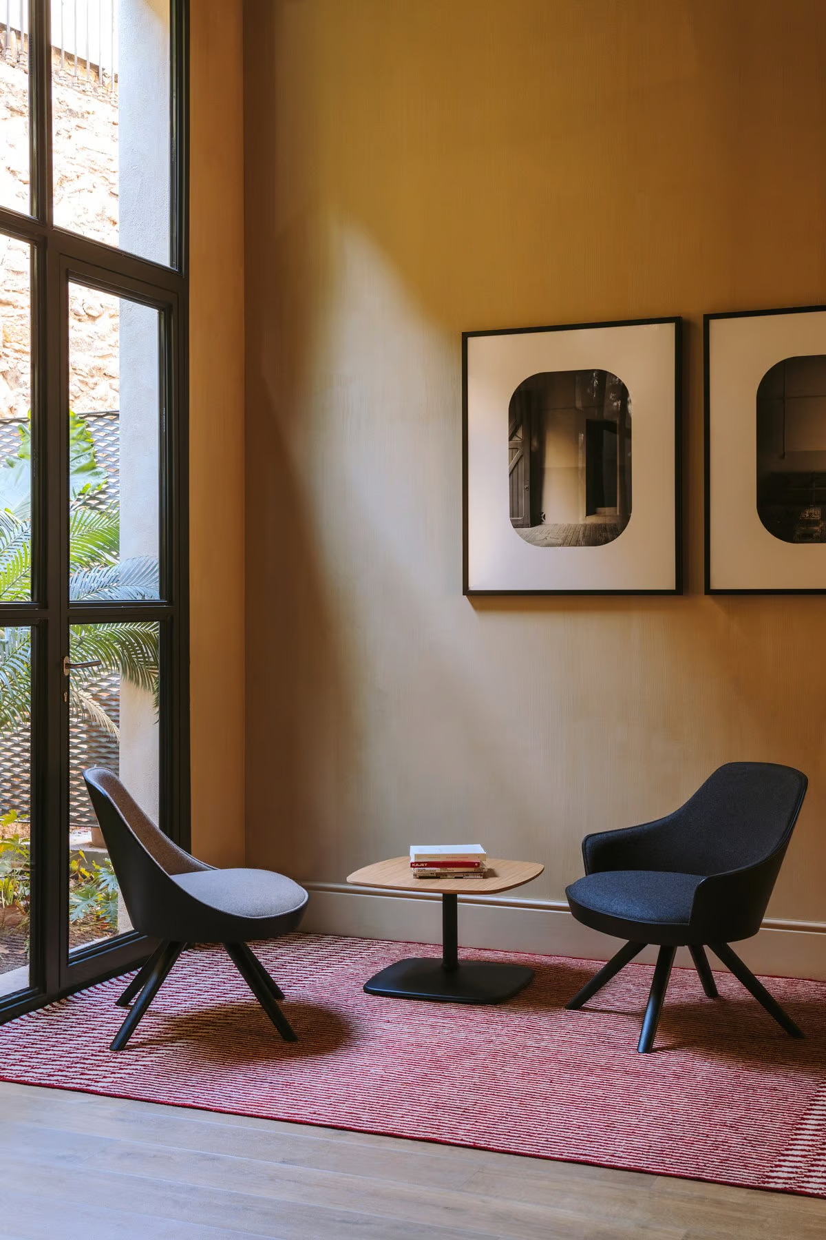 A Kaiak Lounge Spin Wood egy elegáns és sokoldalú bútordarab, amely ideális választás irodák, szállodák, éttermek és más vendéglátóhelyek számára. A természetes vagy festett tölgyfából készült héj, karfával vagy anélkül, különböző kárpitozási lehetőségekkel érhető el: teljesen kárpitozott, csak ülőfelület vagy belső kárpitozás. A 4-lábú forgó szerkezet tömör tölgyfából készül. A Kaiak kollekció a tölgyfa és a kárpit kombinációját kínálja, amely kényelmes és kifinomult ülőalkalmatosságokat eredményez. Az ergonomikus kialakítású, sima vonalvezetésű tölgy székek és lounge ülőkék különböző konfigurációkban rendelhetők, így tökéletesen illeszkednek mind otthoni, mind professzionális környezetbe. Az alap opciók között szerepelnek a tölgyfa lábak, hidegen laminált forgó alap és injektált alumínium 4- vagy 5-ágú alap, kerekekkel vagy anélkül.