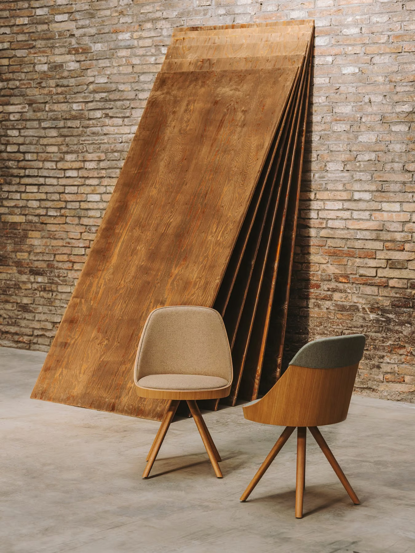 A KAIAK SPIN WOOD szék természetes vagy pácolt tölgyfa ívelt héjjal és masszív fa lábakkal rendelkezik. Számos kárpitozási lehetőséget kínál: teljes kárpitozás, ülés kárpitozás, háromnegyedes kárpitozás és belső kárpitozás. Ez a modell melegséget és kényelmet biztosít irodai vagy vendéglátóipari környezetben. A Kaiak kollekció az tölgyfa és a kárpit kombinációját kínálja, amely modern asztalok és design székek számára is ideális. Alkalmas étkezőasztalok mellé, irodai asztalokhoz, valamint kávézó székek kiegészítőjeként is. A székek és lounge-ok kialakítása révén otthoni, közösségi és professzionális terekben egyaránt megállják a helyüket.
