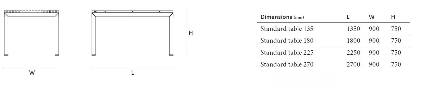 Az Extempore Standard Asztal különböző magasságokban (23 cm, 45 cm, 75 cm, 96 cm és 105 cm) és tizenegy különböző asztallap méretben érhető el, négyzet és téglalap alakú változatokban. Az asztalok kombinálhatók design székekkel és padokkal, így ideális választás irodai asztalnak, étkezőasztalnak vagy kávézó székek mellé. Az Extempore sorozat moduláris kialakítása minimalizálja a hulladékanyag termelést, mivel minden faelem bármely terméken felhasználható. Az alapanyagok fenntartható forrásból, természetvédelmi szervezetek által kezelt területekről származnak, és kizárólag FSC minősítésű fát használnak. A modern asztalok kiváló minőségű anyagokból készülnek, így egész évben kültéren is használhatók. Az Extempore széles választékot kínál, amely magában foglalja a különböző méretű asztalokat, valamint a hozzájuk illő székeket és padokat.