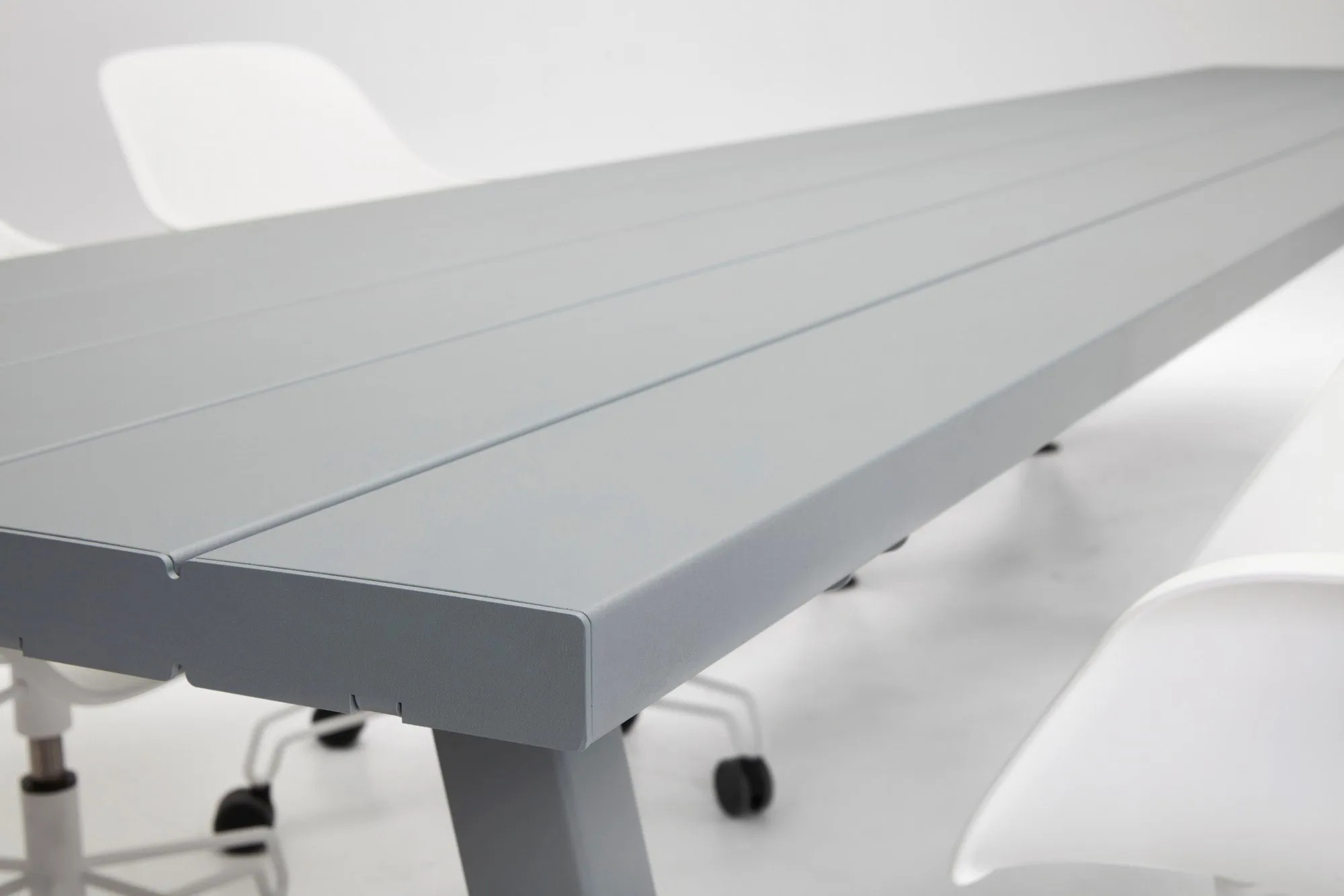 A MARINA COMBO egy sokoldalú megoldás tárgyaló asztalok és várótermek bútorai számára, amelyet cégek, vállalatok, ügyfélszolgálatok és irodaházak számára terveztek. A termék különlegessége, hogy a felhasználók saját igényeik szerint alakíthatják ki az asztal elrendezését. A MARINA asztalok üvegszál és poliészter kompozit anyagból készülnek, amely tartós és modern megjelenést biztosít, miközben kevésbé érzékeny a hőmérséklet- és páratartalom-változásokra. Négy különböző asztallap szélesség és magasság közül választhat, így a konferencia székek és tárgyaló székek elhelyezése is rugalmasan megoldható. Az asztalok különböző hosszúságúak, és a lábak száma a hosszúsággal arányosan növekszik, biztosítva a stabilitást és a funkcionalitást.
