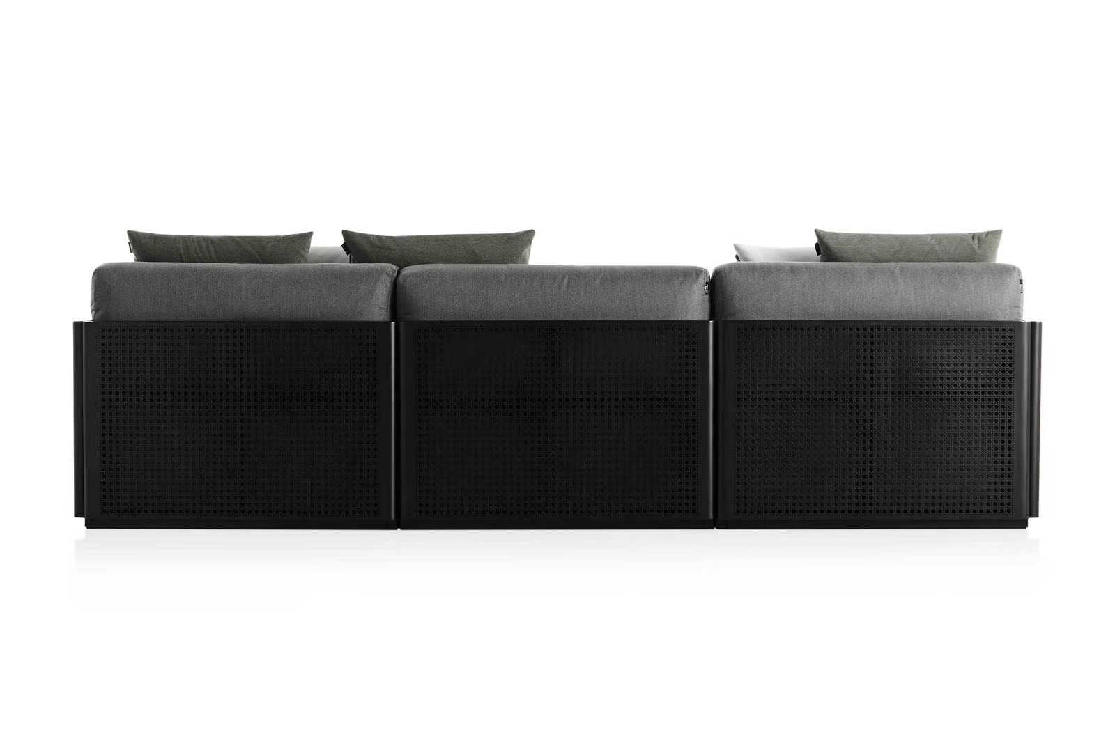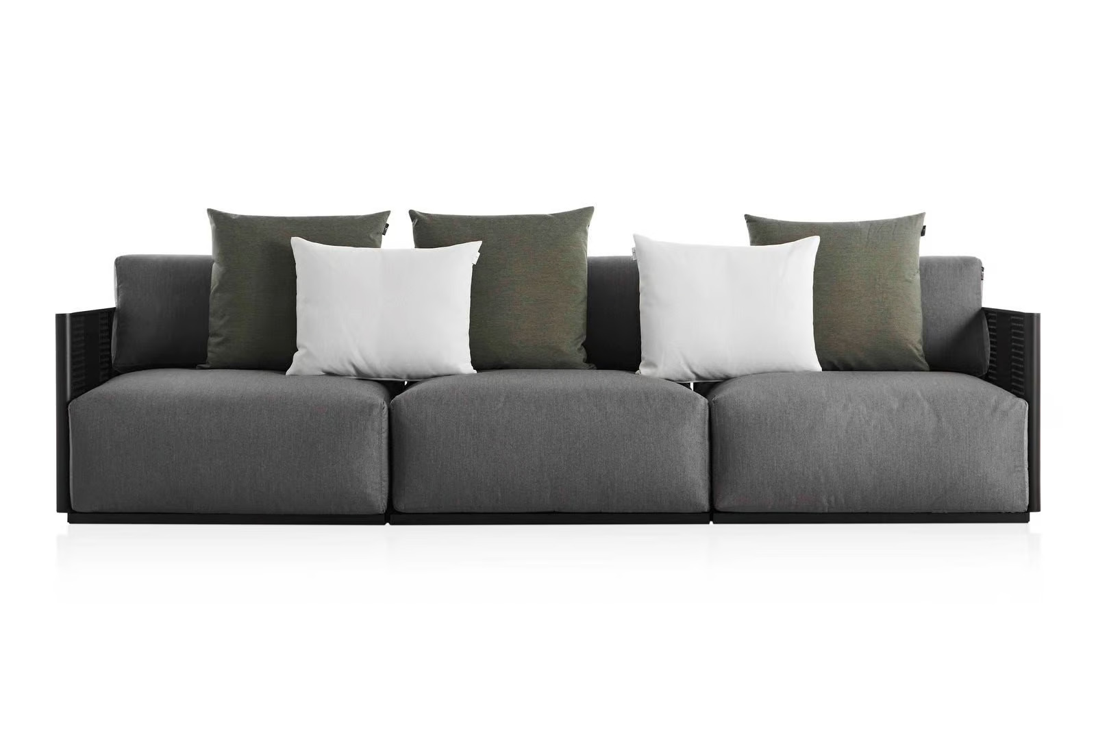 A BOSC 3 személyes kerti kanapé a mediterrán életérzést idézi meg, ötvözve a frissességet és a hagyományt. Az alumíniumból készült szerkezet modern formában tiszteleg a hagyományos növényi rostokból, például vesszőből készült szövési technikák előtt. A kültéri ülőgarnitúra különböző színekben érhető el, mint például fehér, agát szürke, palackzöld, homok, bronz, borvörös, kékesszürke, kvarc szürke, antracit és fekete. Az iroko karfák elegáns megjelenést kölcsönöznek a bútornak, amely ideális választás éttermek, kávézók, szállodák és szabadidős központok számára. A BOSC kanapé a kültéri bútorok és kültéri kanapék kategóriájában kiemelkedő, stílusos és tartós megoldást kínál.
