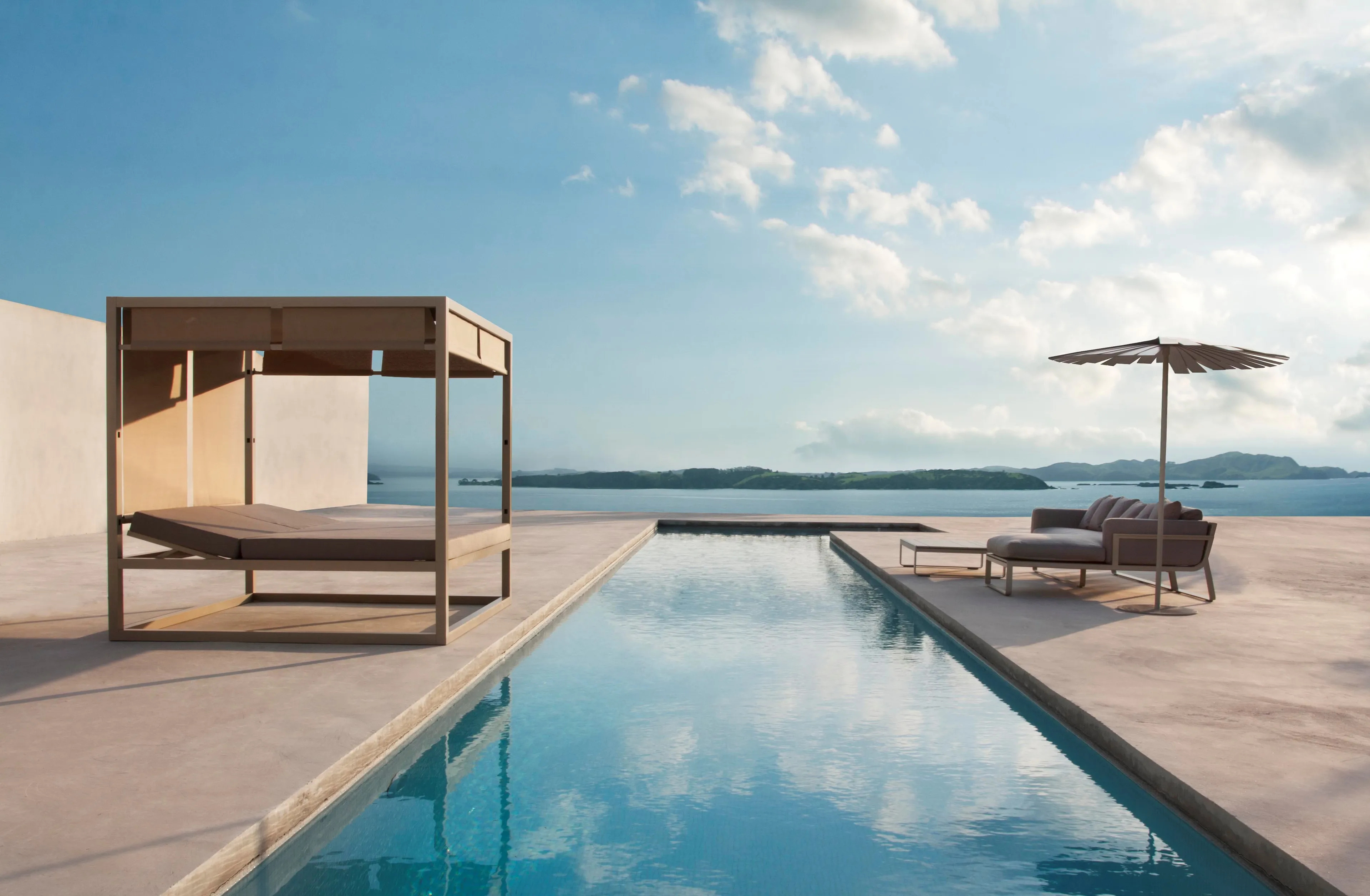 A DAYBED ELEVADA egy elegáns és funkcionális kerti bútor, amely ideális választás éttermek, kávézók, szállodák és szabadidős központok számára. Az alumínium profilokból készült szerkezet anodizált vagy termo-lakkozott kivitelben érhető el, biztosítva a tartósságot és az időjárásállóságot. A dönthető háttámla és a vízlepergető szövettel borított poliuretán habszivacs kényelmes pihenést biztosít. A levehető szövetborítás megkönnyíti a tisztítást és karbantartást. A színválasztékban megtalálható az anodizált, fehér, agát szürke, cement szürke, homok, bronz, borvörös, kék szürke, szürke kék, antracit és fekete árnyalat. A DAYBED ELEVADA tökéletes kiegészítője lehet bármely kültéri ülőgarnitúrának, kültéri székeknek vagy kültéri kanapénak.