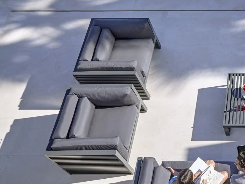 A DNA kültéri ülőgarnitúra kollekció a mediterrán zsalugáterek fény-árnyék játékának és a japán építészet árnyékainak újraértelmezése. Az alumínium profilokból készült bútorok letisztult formavilágot képviselnek, elkerülve minden felesleges díszítést. Az ülőfelületek poliuretán habszivacsból készülnek, vízlepergető szövettel borítva, amely levehető és könnyen tisztítható. A kollekció színválasztéka az antracittól a borvörösig terjed, beleértve az antracitot, fehéret, agátszürkét, cement szürkét, homokot, bronzot, borvöröset, kékesszürkét, jelzőszürkét és feketét. Ideális választás éttermek, kávézók, szállodák, panziók, vendéglátóipari egységek, közparkok és szabadidős központok számára, ahol a kültéri bútorok esztétikája és funkcionalitása egyaránt fontos.