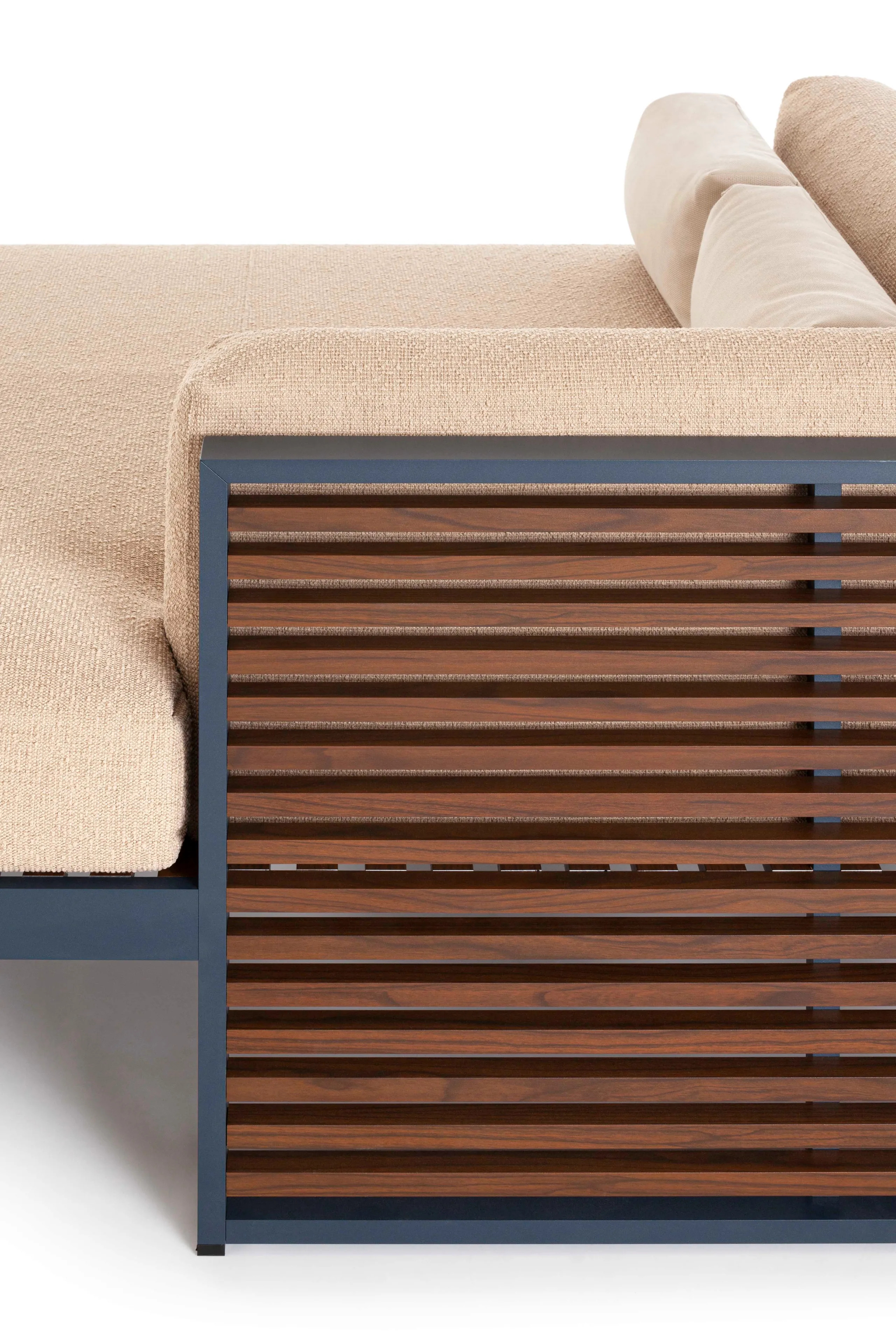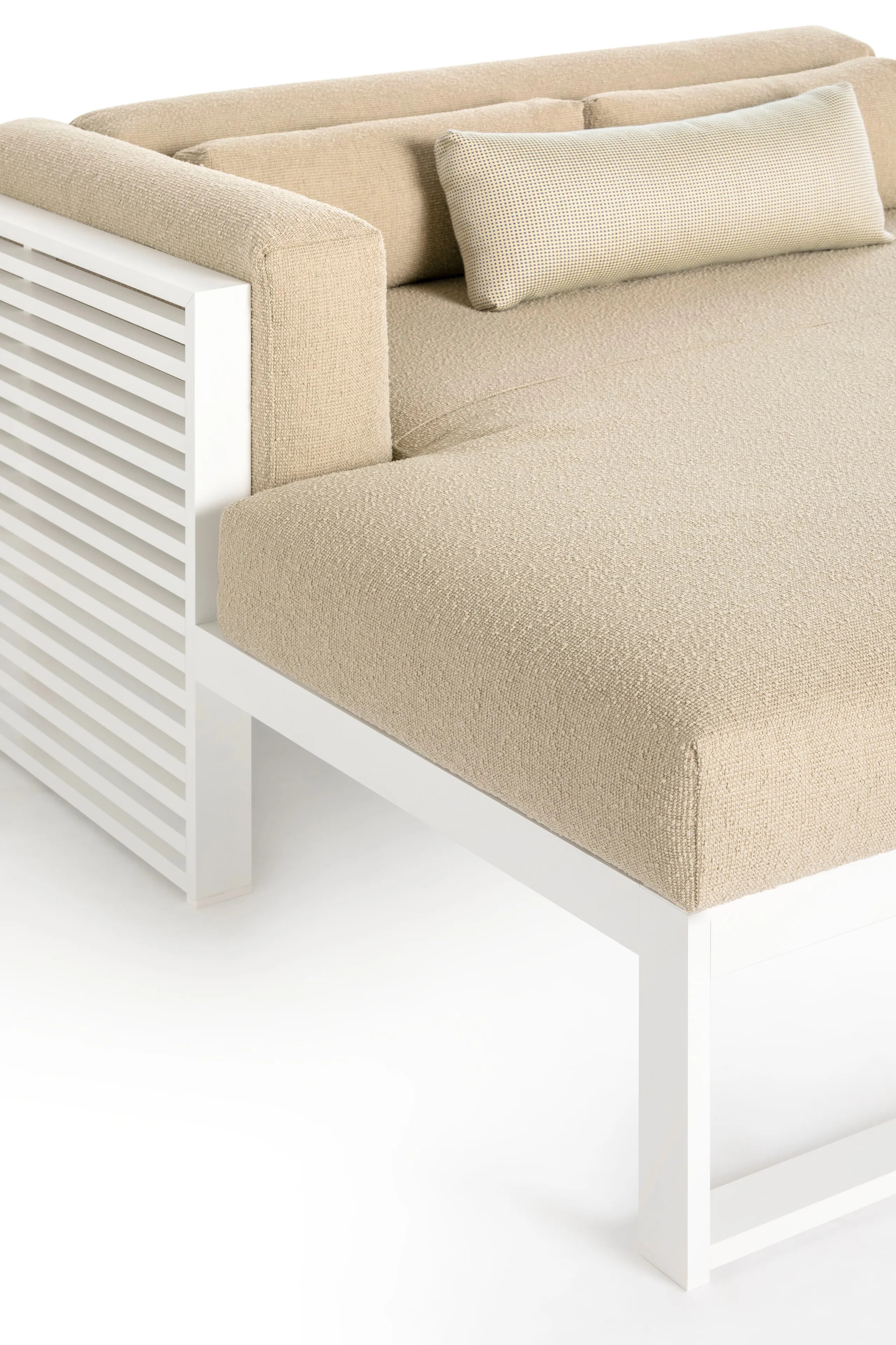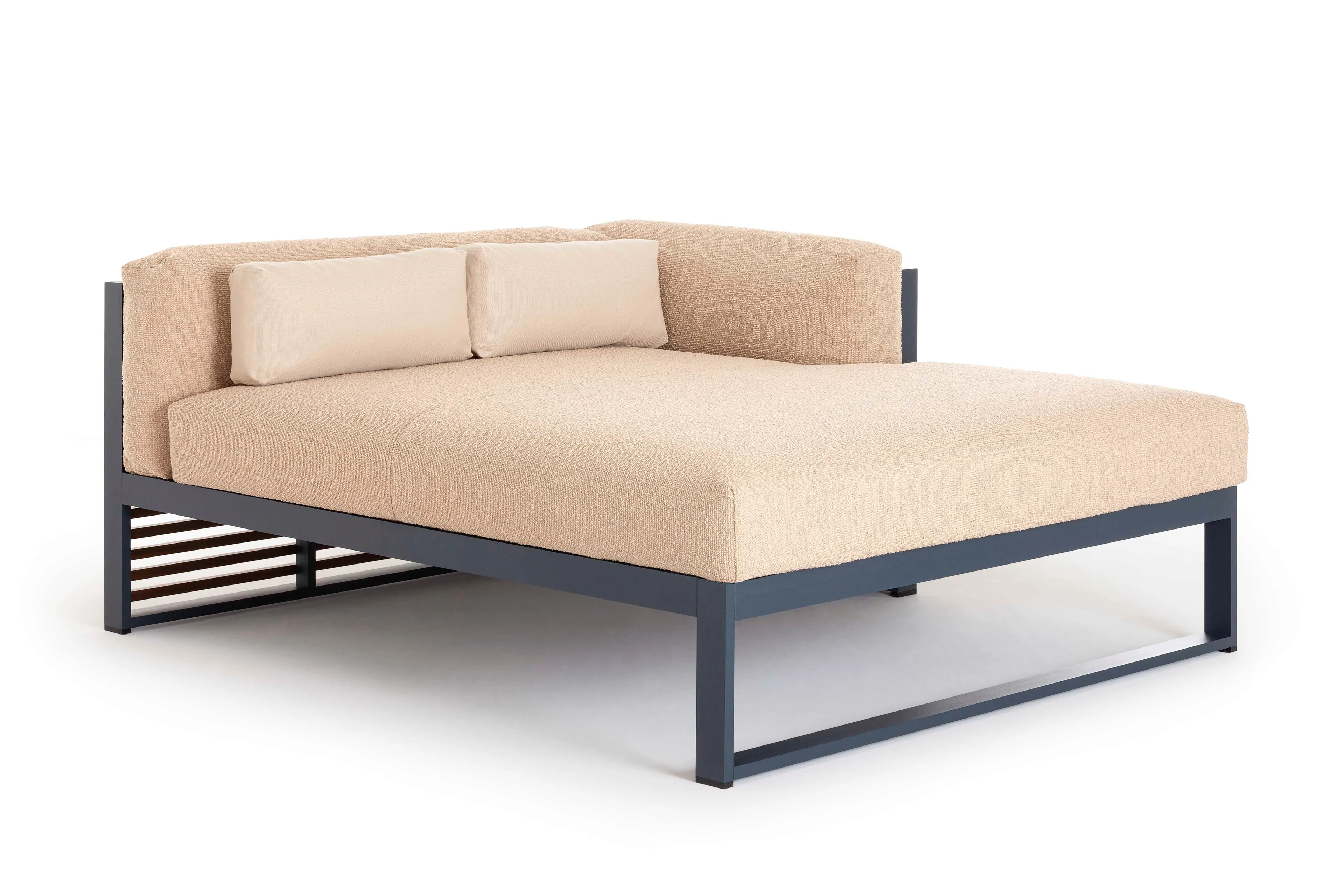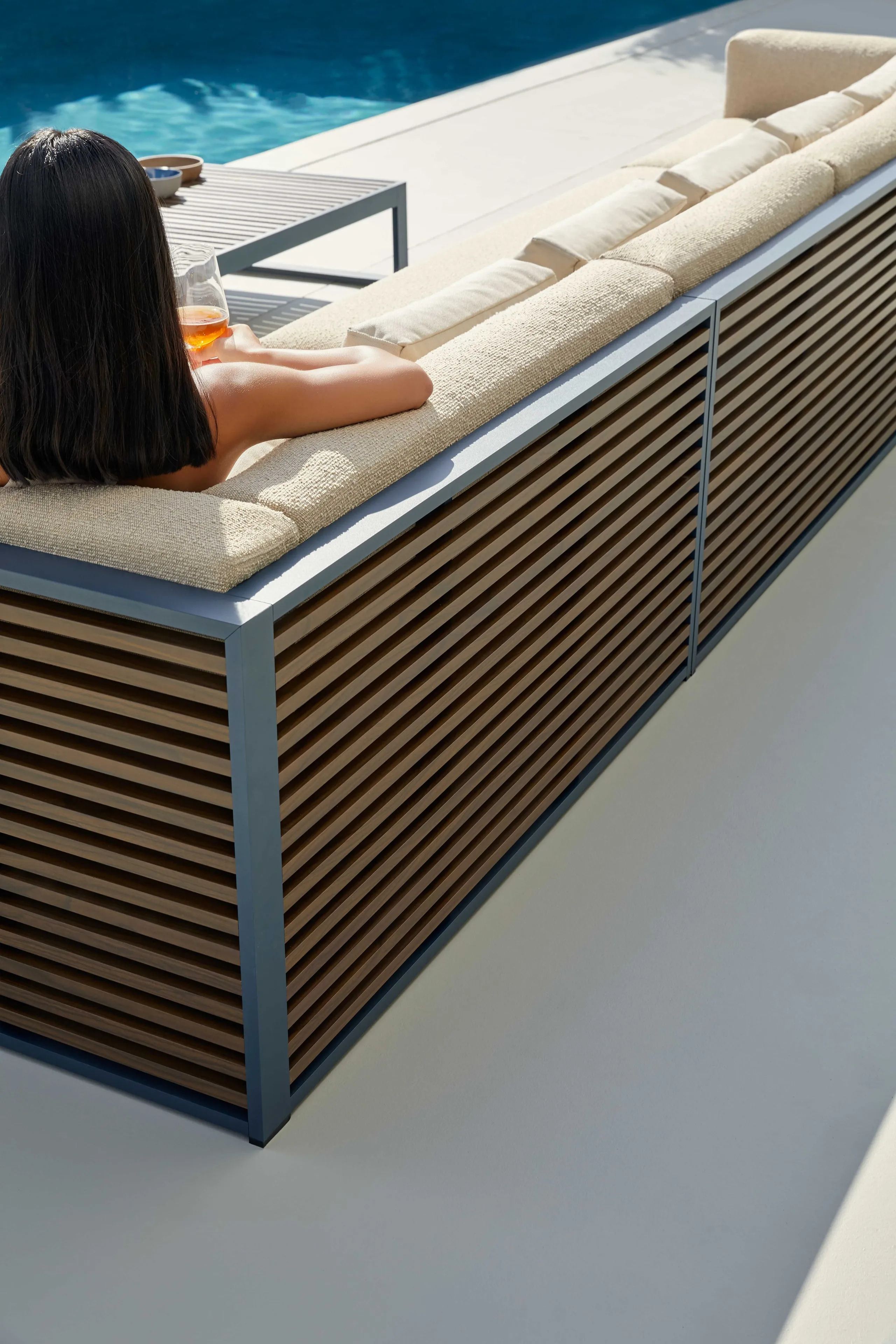 A DNA 2 XL kültéri ülőgarnitúra a mediterrán zsalugáterek fény-árnyék játékának és a japán esztétika árnyékainak újraértelmezése. Az alumínium profilokból készült szerkezet elérhető eloxált vagy termo-lakkozott kivitelben, amely tartósságot és eleganciát biztosít. A poliuretán habszivacs vízlepergető szövettel van bevonva, amely könnyen eltávolítható és tisztítható. A kerti bútorok színválasztéka széles, beleértve az eloxált, fehér, achát szürke, cement szürke, homok, bronz, borvörös, kékesszürke, szürke kék, jelzőszürke, antracit és fekete árnyalatokat. Ideális választás éttermek, kávézók, szállodák, panziók, vendéglátóipari egységek, közparkok és szabadidős központok számára, ahol a kültéri székek és kanapék esztétikai és funkcionális értéket képviselnek.