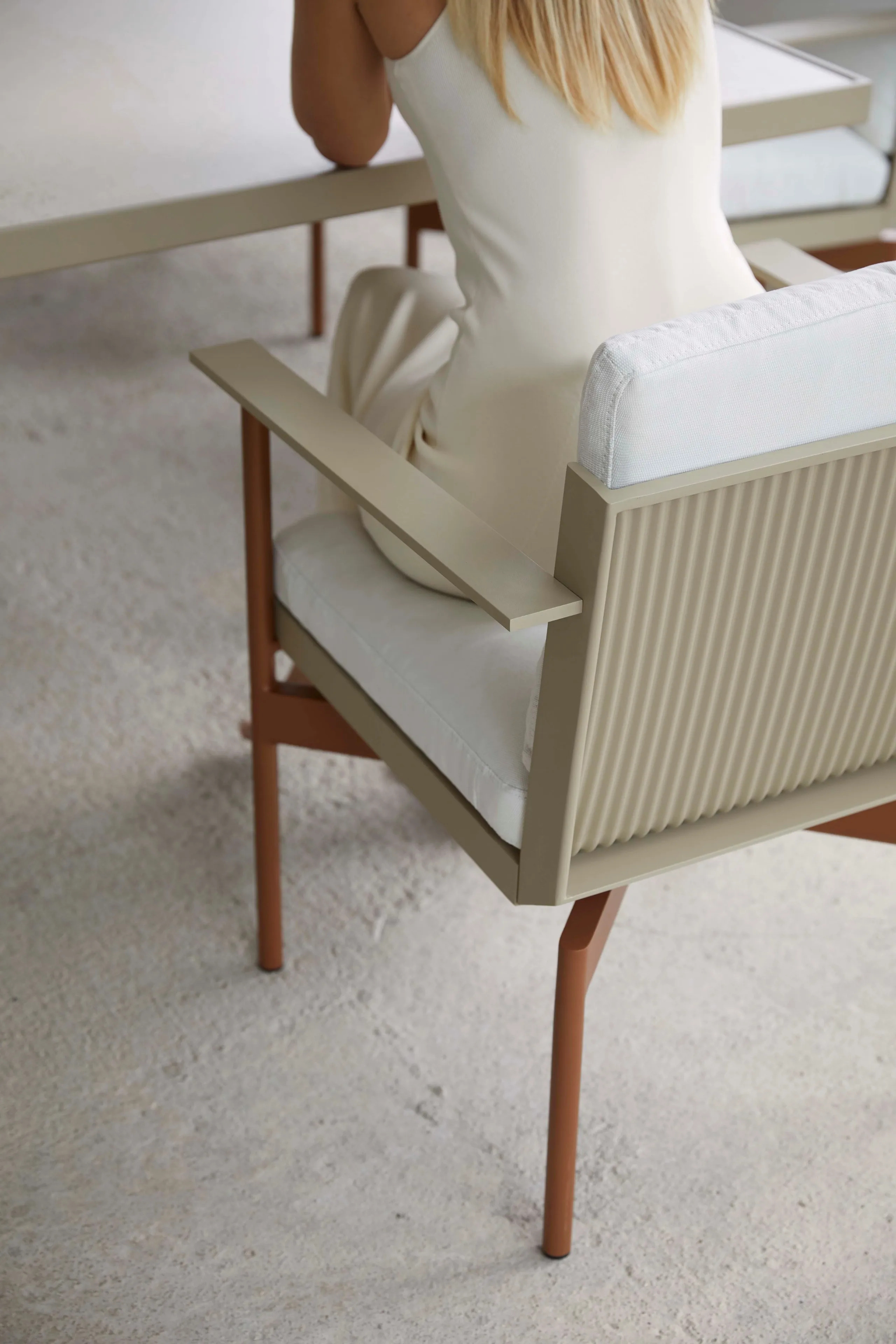 Az ONDE szék karfás, szövetborítású kialakításával ideális választás irodák, éttermek, kávézók és középületek számára. A tervezés során a moduláris kanapék rugalmasságát ötvözték a modern asztalok és design székek világával. Az ONDE szék a kültéri bútorok piacának változásaira reagál, miközben harmonikusan illeszkedik a belső terek dekorációjához is. Az irodai asztalok és étkezőasztalok mellett is jól mutat, így sokoldalúan alkalmazható különböző környezetekben, mint például konferenciatermek, tárgyalótermek vagy vendéglátóipari egységek. A GANDIABLASCO alapelveit követve, az ONDE szék a funkcionalitást és az esztétikát ötvözi, hogy a kávézó székek és irodai bútorok között is kiemelkedjen.