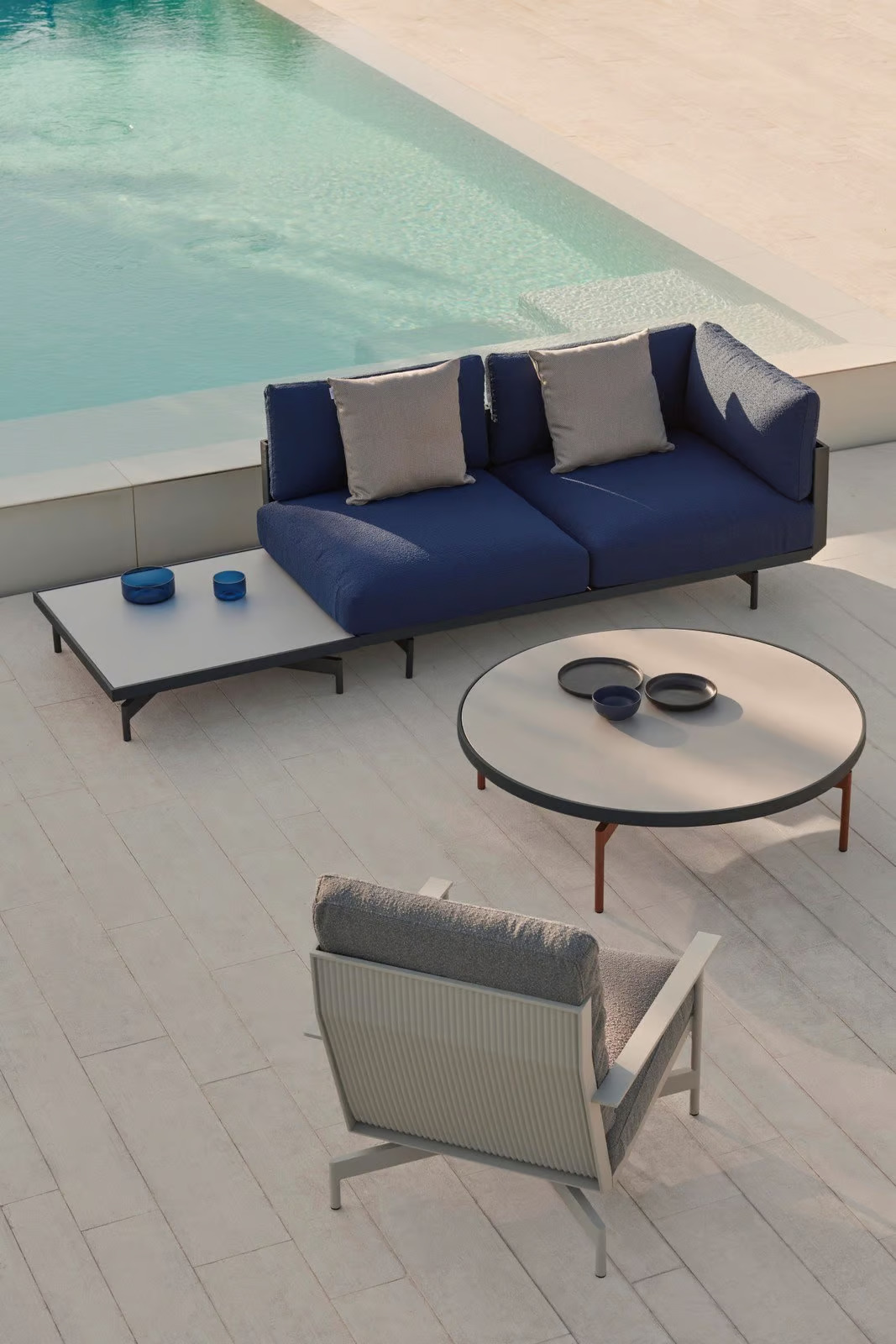 Az ONDE kerti klubfotel egy kárpitozott, szövetborítású kültéri ülőalkalmatosság, amely a modern dizájnt ötvözi a beltéri bútorok kényelmével és kidolgozottságával. A fotel hegesztett, hullámos alumíniumlemezből készült, amely tartósságot biztosít a kültéri használat során. A párna poliuretán habbal van töltve, és vízlepergető szövettel borított, amely különleges kültéri anyagokból készült. Az ONDE kollekció célja, hogy rugalmasan alkalmazkodjon a változó kültéri bútorpiac igényeihez, miközben harmonikusan illeszkedik a belső terek dekorációjához is. Ideális választás éttermek, kávézók, szállodák és egyéb vendéglátóipari egységek számára, ahol a kültéri székek és kanapék kényelme és stílusa kiemelt fontosságú.