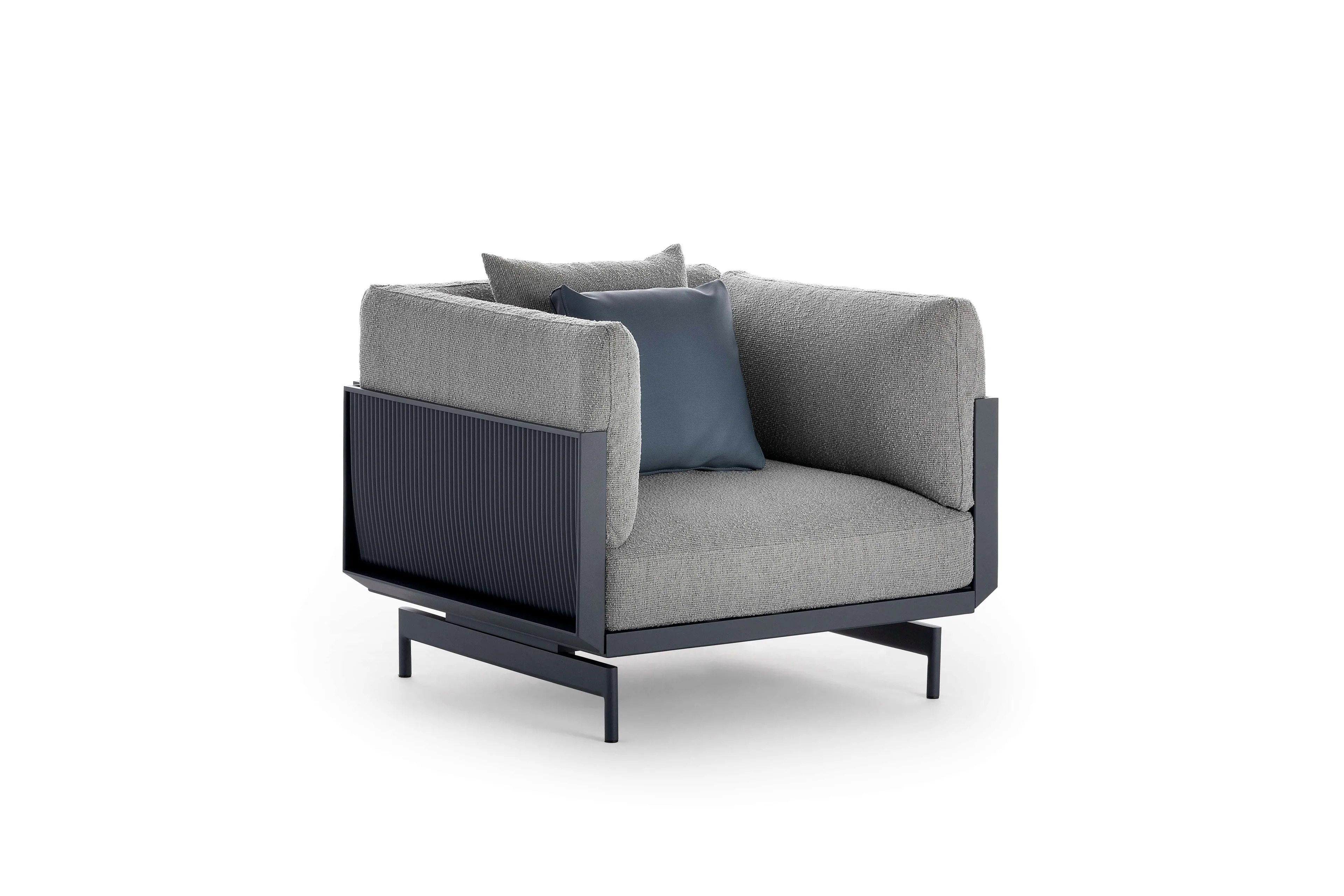 Az ONDE kerti karosszék egyesíti a textil és a hőre keményedő lakkozott alumínium előnyeit, ideális választás éttermek, kávézók, szállodák és más vendéglátóipari egységek számára. A moduláris kialakítás lehetővé teszi a rugalmas elrendezést, alkalmazkodva a kültéri bútorok piacának változó igényeihez. A GANDIABLASCO tervezési elvei alapján készült, így a kerti bútorok nemcsak a szabadban, hanem a belső terekben is harmonikusan elhelyezhetők. Az ONDE kollekció részeként ez a kültéri ülőgarnitúra tökéletesen illeszkedik a modern környezetbe, legyen szó közparkokról, szabadidős központokról vagy kültéri rendezvényekről.