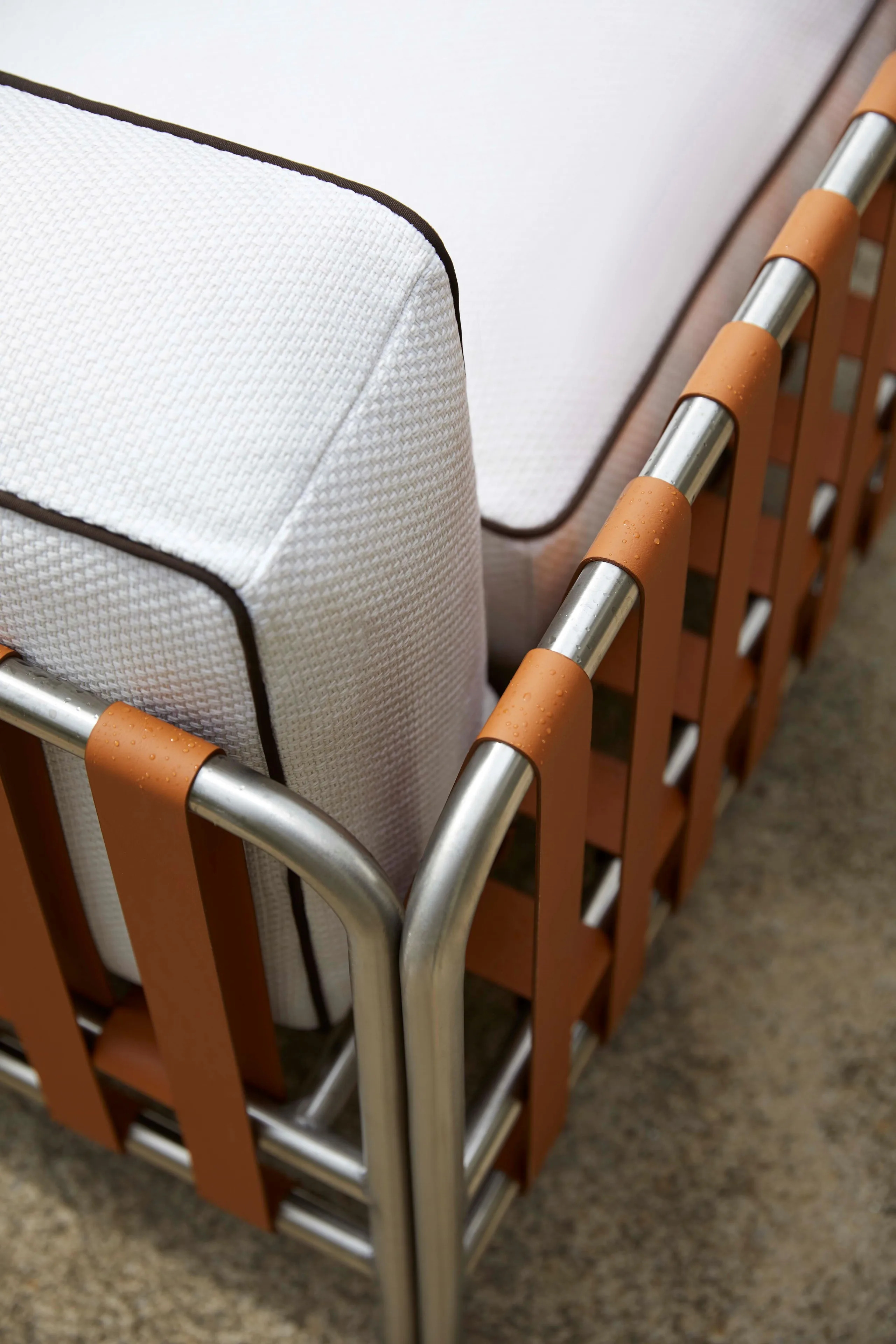 Az ONSEN 4 kollekció, amelyet Francesco Meda és David Quincoces tervezett a GANDIABLASCO számára, a jövő klasszikusának ígérkezik. Ez a kültéri ülőgarnitúra a nyugalom és az esztétika tökéletes egyensúlyát kínálja, ahol a lineáris és lényegre törő formák egyediséggel párosulnak. A kollekció részei közé tartoznak a kültéri székek, kanapék, moduláris kanapék és különböző alacsony asztalok, amelyek rozsdamentes acél, rugalmas szíjak, alumínium lemez és teakfa anyagok harmonikus kombinációjával készülnek. Az ONSEN darabjai geometrikus, egyszerű vonalakkal rendelkeznek, amelyek frissességet és kifinomultságot sugároznak, miközben sokoldalúságuk révén különböző térbeli elrendezéseket tesznek lehetővé. A kollekció különlegessége, hogy az ülések és háttámlák bőr szíjakon nyugszanak, amelyek rozsdamentes acél vázhoz rögzítettek, így a grafikai és esztétikai elemek egyensúlyban vannak a technikai megoldásokkal.