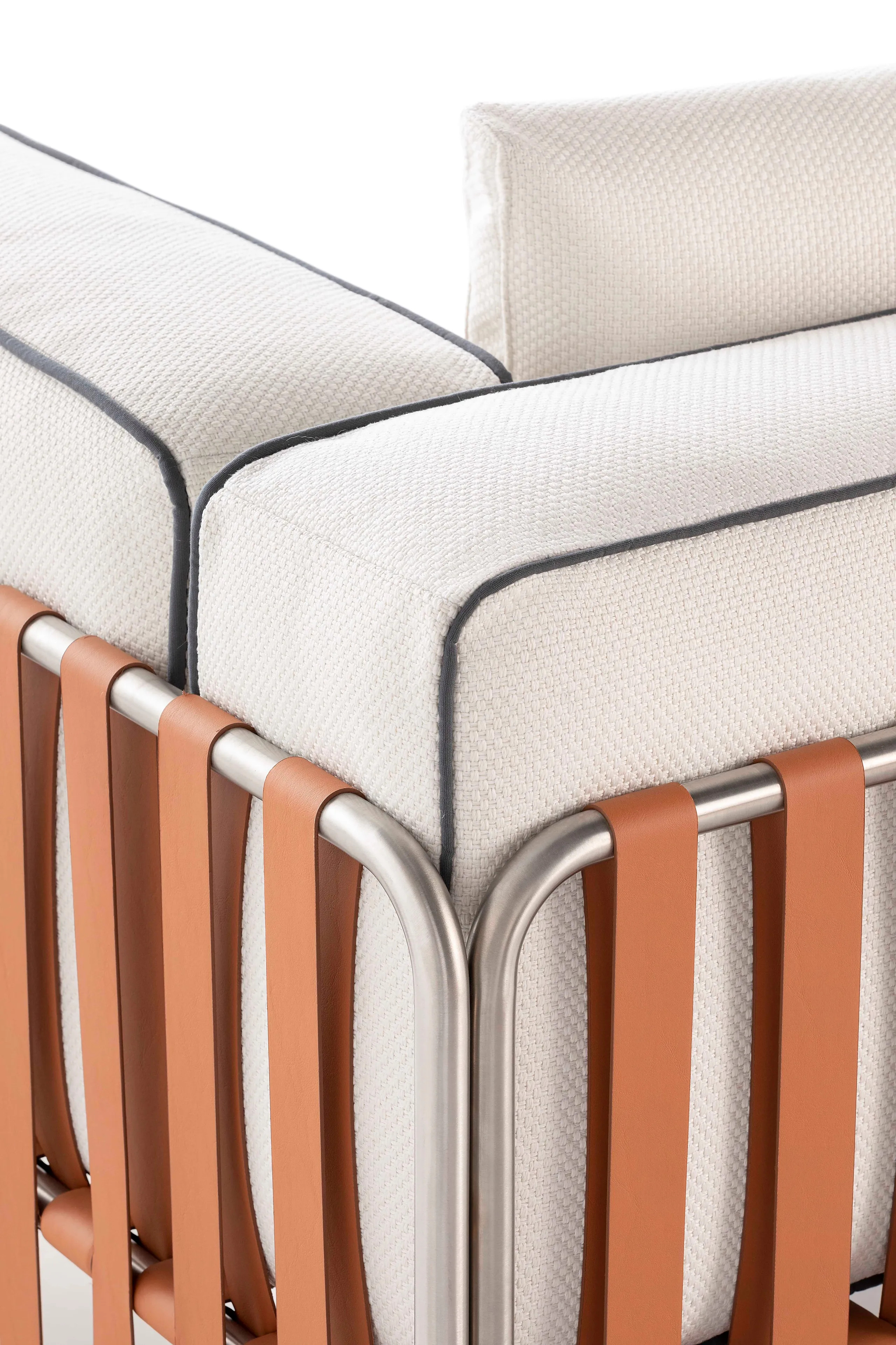 Az ONSEN 6 kollekció a GANDIABLASCO és a tervezők, Francesco Meda és David Quincoces együttműködésének eredménye, amely a jövő klasszikusát hozza el. A kollekció kültéri ülőgarnitúrái, mint a karosszékek, kanapék, moduláris kanapék és alacsony asztalok, a rozsdamentes acél, rugalmas szíjak, alumínium lemez és teakfa anyagok harmonikus kombinációjával készülnek. Az egyszerű, geometrikus vonalak és a részletek hangsúlyozása a funkcionalitást és az esztétikát szolgálja. Az ONSEN kültéri bútorok sokoldalúságukkal tűnnek ki, lehetővé téve a tér modulálását különböző kombinációkban, amelyek alkalmasak pihenésre vagy formálisabb elrendezésekre. A bőr szíjak és a rozsdamentes acél szerkezet közötti kontraszt, valamint az anyagok közötti játék adja a kollekció egyedi karakterét.