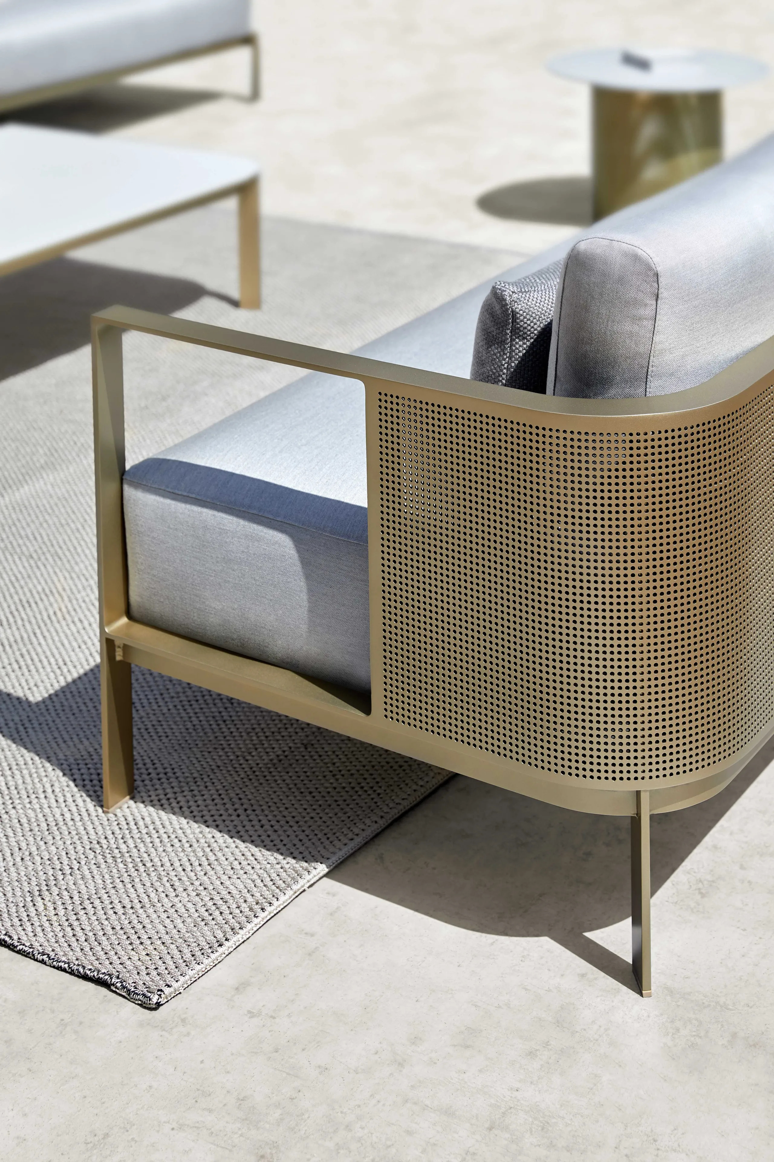 A SOLANAS 3 személyes kerti kanapé a GANDIABLASCO új kollekciójának része, amelyet az argentin építész és tervező, Daniel Germani esztétikai érzékenysége és a szabadban való tartózkodás iránti szenvedélye ihletett. A kanapé a Solanas nevű uruguayi tengerpart előtt tiszteleg, ahol Germani nyarait töltötte. A kültéri ülőgarnitúra tervezése során Germani édesapja vendégszeretete és a természet, család, valamint gasztronómia iránti szeretete is megjelenik. A kanapé hőre keményedő, hegesztett alumínium profilokból készült, Dekton® felülettel és vízlepergető szövettel borított poliuretán habszivaccsal. A huzat levehető, és a kollekció színválasztéka széles: fehér, achátszürke, cement szürke, palackzöld, arany, homok, bronz, borvörös, kékesszürke, kvarcszürke, antracit és fekete.