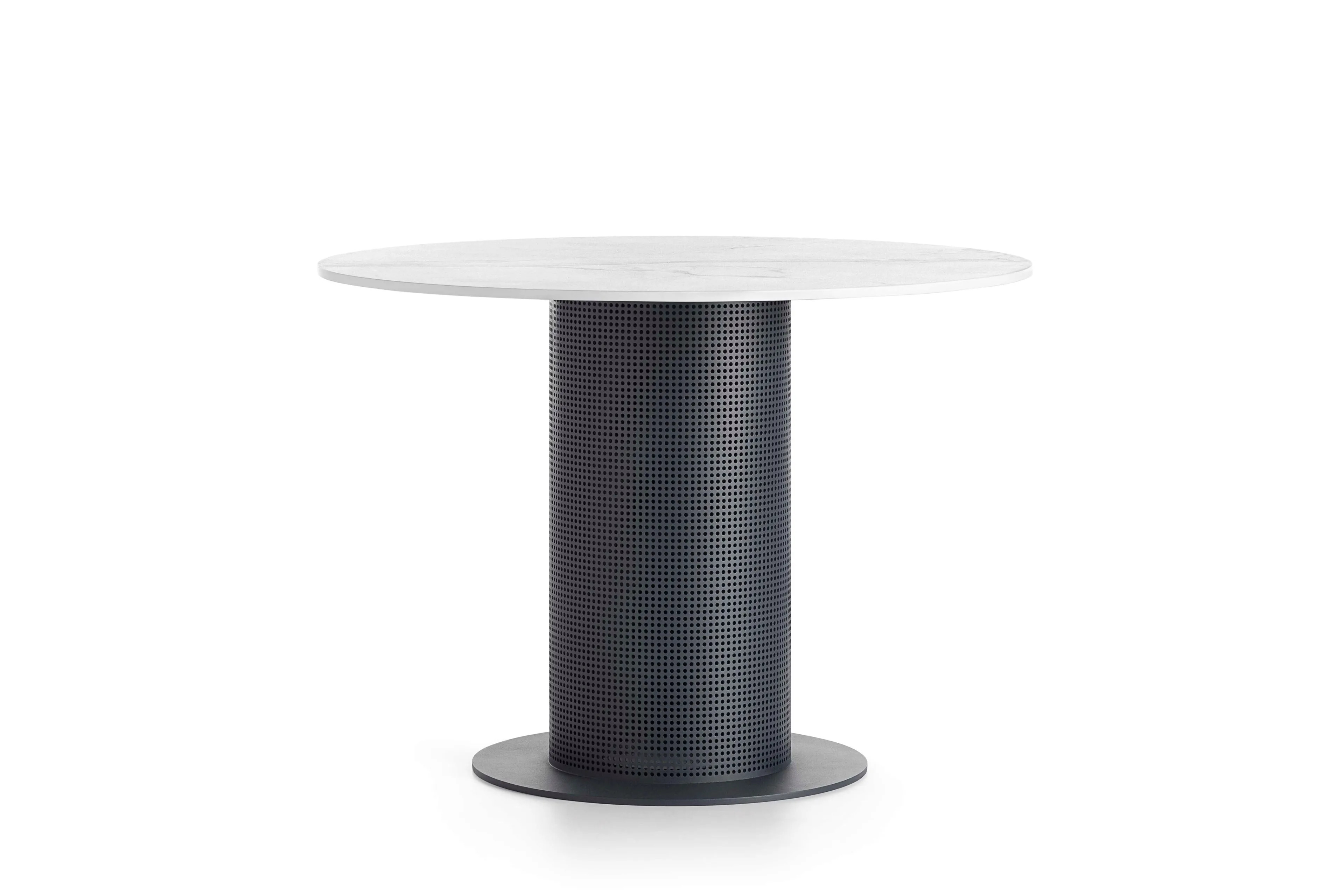 A SOLANAS kerek kávézóasztal a GANDIABLASCO új kollekciójának része, amelyet Daniel Germani argentin építész és tervező esztétikai érzékenysége és a szabadtéri élet iránti szenvedélye ihletett. Az asztal a Solanas nevű uruguayi tengerpart előtt tiszteleg, ahol Germani nyarait töltötte. Az asztal anyaga hőre keményedő, hegesztett alumínium profilokból készült, Dekton® felülettel, és vízlepergető szövettel borított poliuretán habbal. A huzat levehető, és a kollekció színmintái között megtalálható a fehér, agát szürke, cement szürke, palackzöld, arany, homok, bronz, borvörös, kékesszürke, kvarc szürke, antracit és fekete. Ideális választás étkezőasztalnak, irodai asztalnak vagy modern asztalok kiegészítőjeként, és jól illeszkedik design székek és kávézó székek mellé.