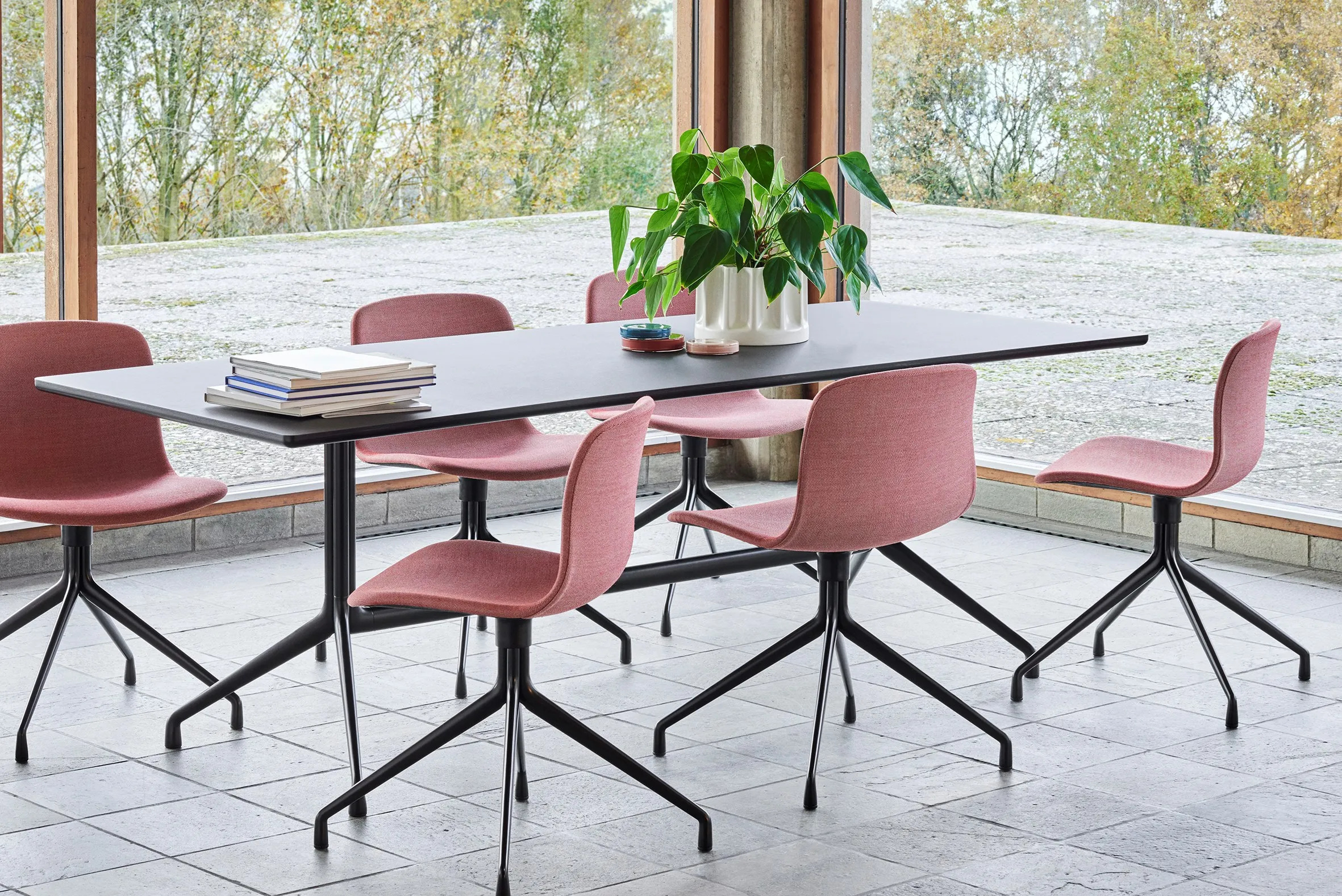 Az About A Chair AAC 11 egy elegáns, modern szék, amely ideális választás irodai asztalokhoz, étkezőasztalokhoz és kávézókba. A szék acélból készült forgó talppal rendelkezik, amely formálisabb megjelenést kölcsönöz neki, mint a sorozat fa lábú változatai. Az ívelt, nyitott héj finom, elegáns lábakon nyugszik, amelyek központi talpból ágaznak ki. Az öntött alumínium forgó talp polírozott vagy porszórt kivitelben érhető el, míg a polipropilén héj különböző színekben és kárpitozási lehetőségekben kapható, így számos design kombinációt kínál. A héj 10 mm vastag polipropilénből és 10 mm habból készül, karfa nélküli teljes kárpitozással. Háromféle talp kivitelben elérhető: polírozott alumínium, fehér porszórt alumínium (RAL 9003) és fekete porszórt alumínium (RAL 9005).