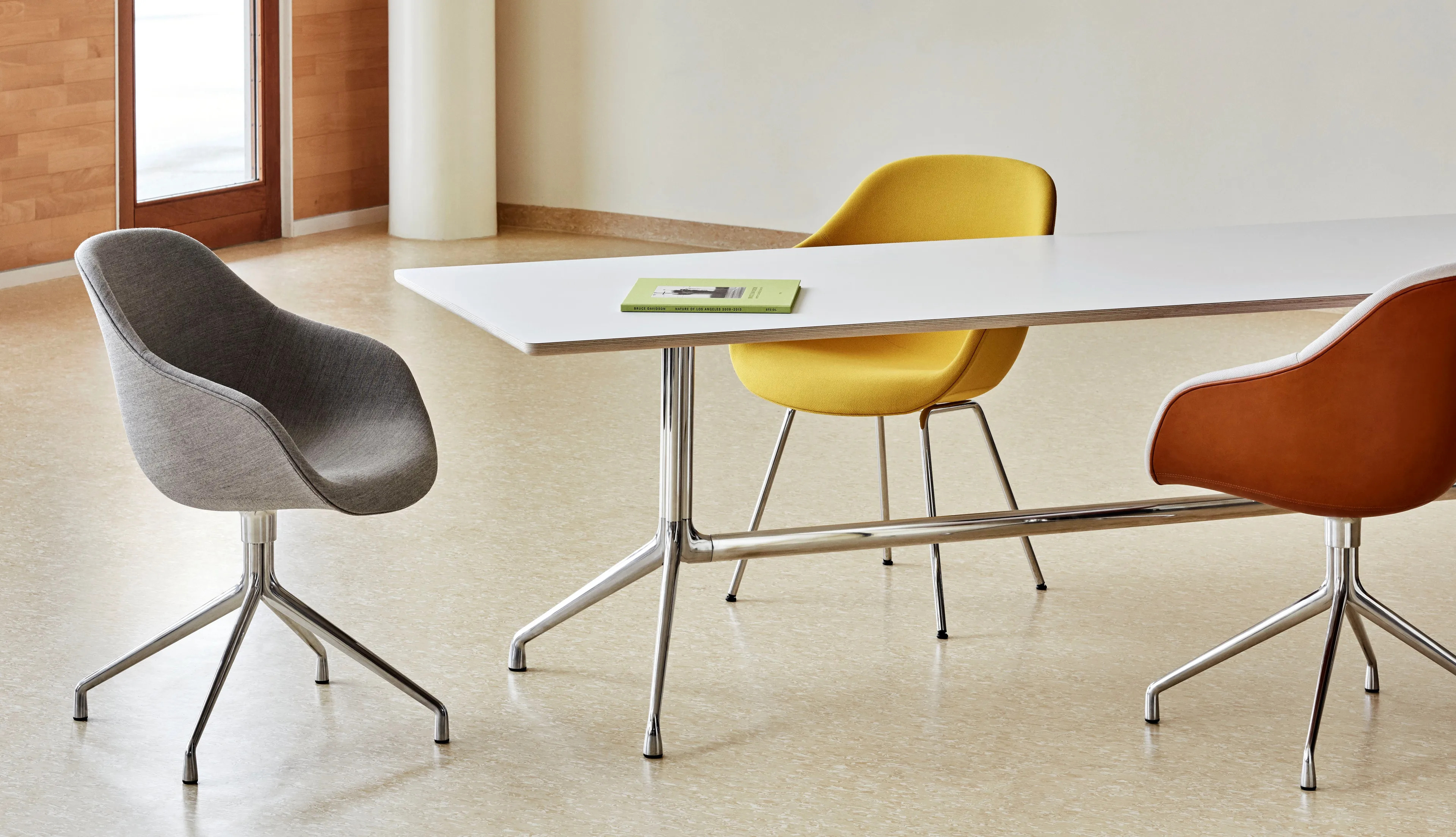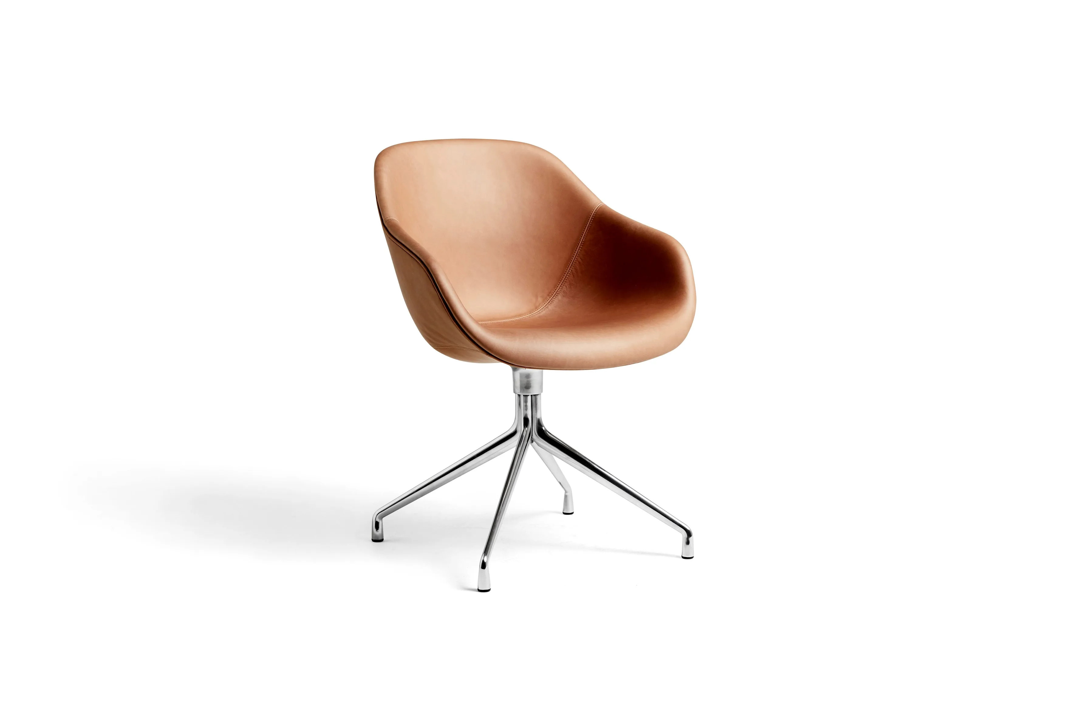 Az AAC 121 szék alumínium forgó talppal rendelkezik, amely formálisabb megjelenést kölcsönöz neki a sorozat többi változatához képest. A magas háttámla és a tágas ülés megmarad, míg a funkcionális talp középről kifelé terjedő lábakkal van kialakítva. A talp elérhető polírozott vagy porszórt alumínium kivitelben, míg a héj különböző kárpitozási lehetőségekkel választható, így számos design kombinációt kínál. Ez a sokoldalúság ideálissá teszi irodai asztalok, étkezőasztalok, modern asztalok, valamint kávézó székek környezetében. A héj 10 mm-es polipropilénből készül, 10% üvegszállal, teljesen kárpitozott, 20-50 mm-es formázott poliuretán habbal. A 4 csillagos forgó talp öntött alumíniumból készült, és kétféle kivitelben kapható: fekete porszórt alumínium (RAL 9005) és polírozott alumínium.