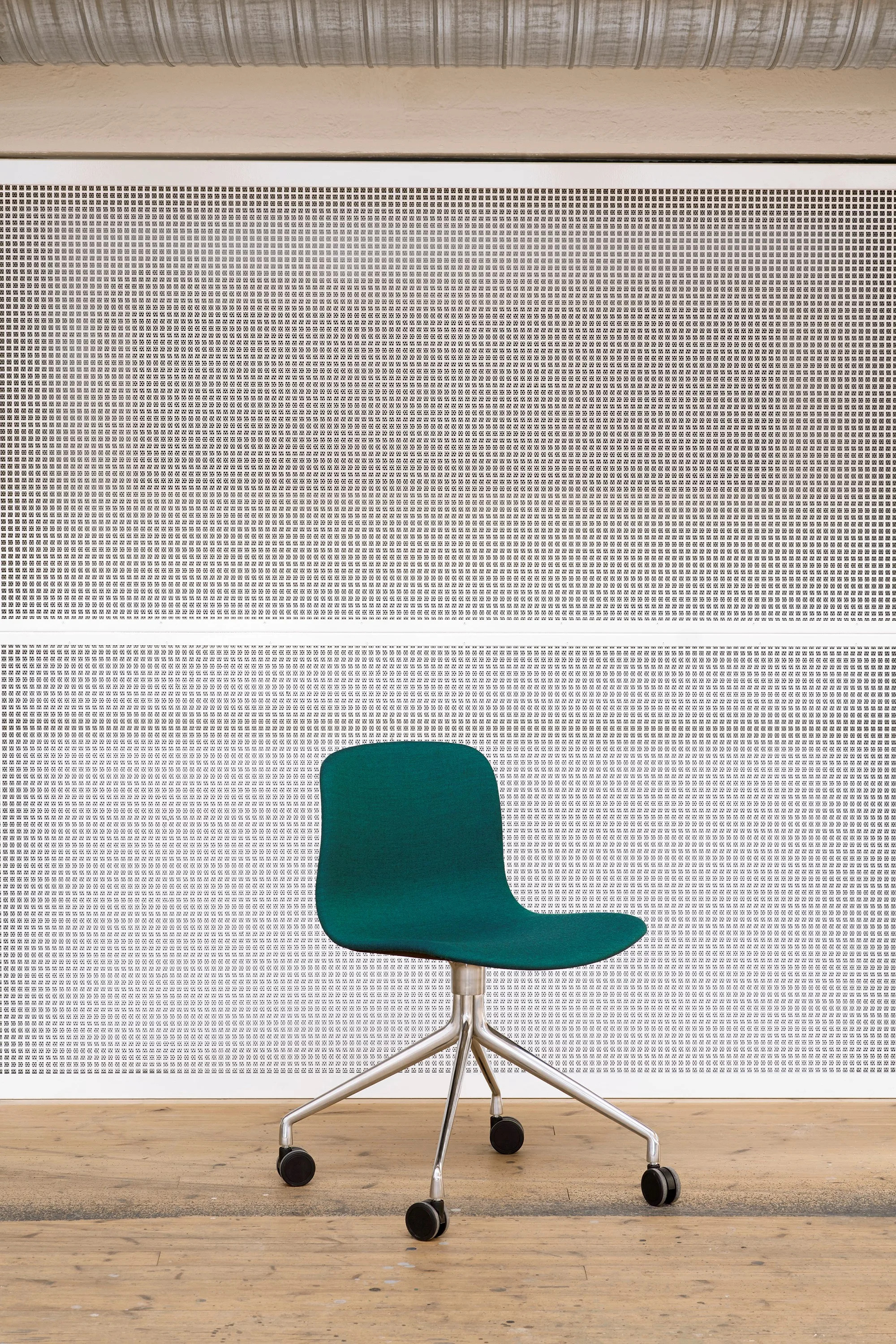 Az ABOUT A CHAIR AAC 15 egy letisztult és jellegzetes formájú szék, amelyet az elegáns, négycsillagos alumínium görgős talp tesz ideálissá formális, vállalati környezetekbe és otthoni irodákba. A polipropilén héj számos színben és kárpitozási lehetőséggel elérhető, míg a talp különböző kivitelben választható. Az injektált polipropilén héj karfa nélküli, teljes kárpitozással rendelkezik, 10 mm vastag polipropilén és 10 mm habréteggel. A szék 4 csillagos forgó talppal és kerekekkel készül, választható fekete (RAL 9005), fehér (RAL 9003) porszórt alumínium vagy polírozott alumínium kivitelben. Ideális választás étkezőasztalokhoz, irodai asztalokhoz, modern asztalokhoz, valamint kávézókba és éttermekbe.