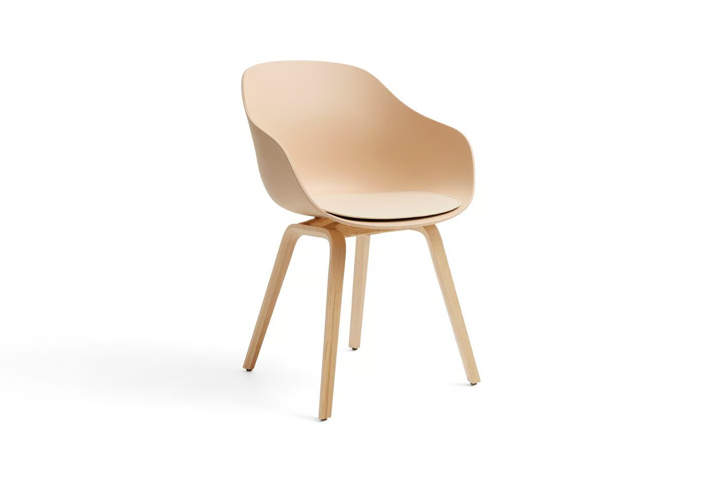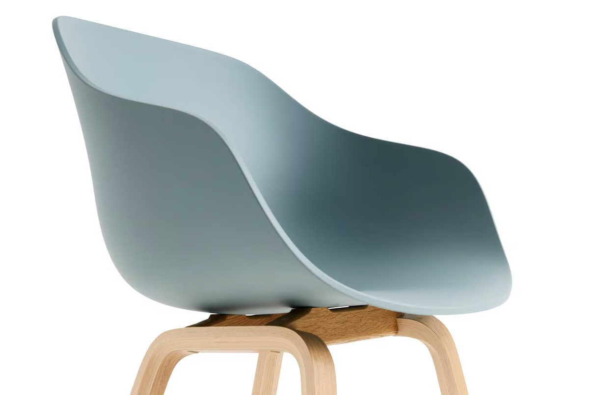 Az AAC 222 szék fa váza elegáns, elkeskenyedő lábakkal rendelkezik, időtlen és természetes megjelenést kölcsönözve. Az AAC kollekció alapvető elképzelését megőrizve, ez a modell ívelt héjjal és kissé magasabb háttámlával rendelkezik. A héjszerkezet mély, tágas ülést biztosít, amely vonzó esztétikát ötvöz magas szintű kényelemmel, míg az alacsonyabb kartámaszok jó támaszt nyújtanak, és lehetővé teszik, hogy a szék könnyedén elférjen étkezőasztal vagy irodai asztal alatt. A fa alap karaktert és stabilitást ad, különböző felületekkel elérhető, míg az újrahasznosított műanyag héj modern színek széles palettáján és többféle kárpitozási lehetőséggel kapható. A számos változat és design kombináció sokoldalúságot biztosít, így ideális választás kávézó székek, modern asztalok és különféle intézményi környezetek számára.